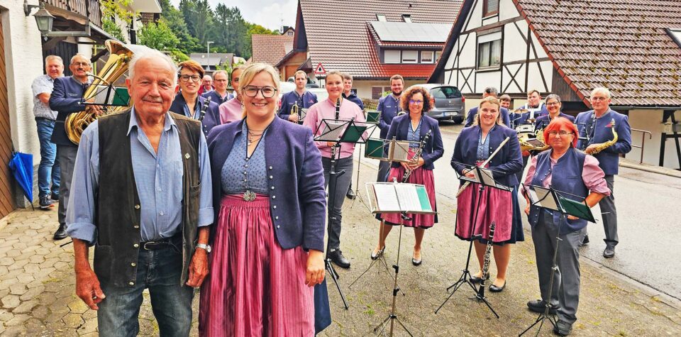 Die Musiker der Trachtenkapelle Nordrach trafen sich anlässlich des 85. Geburtstags von Franz Boschert am Montagabend auf dem Huberhof, um dem Jubilar musikalisch zu gratulieren.