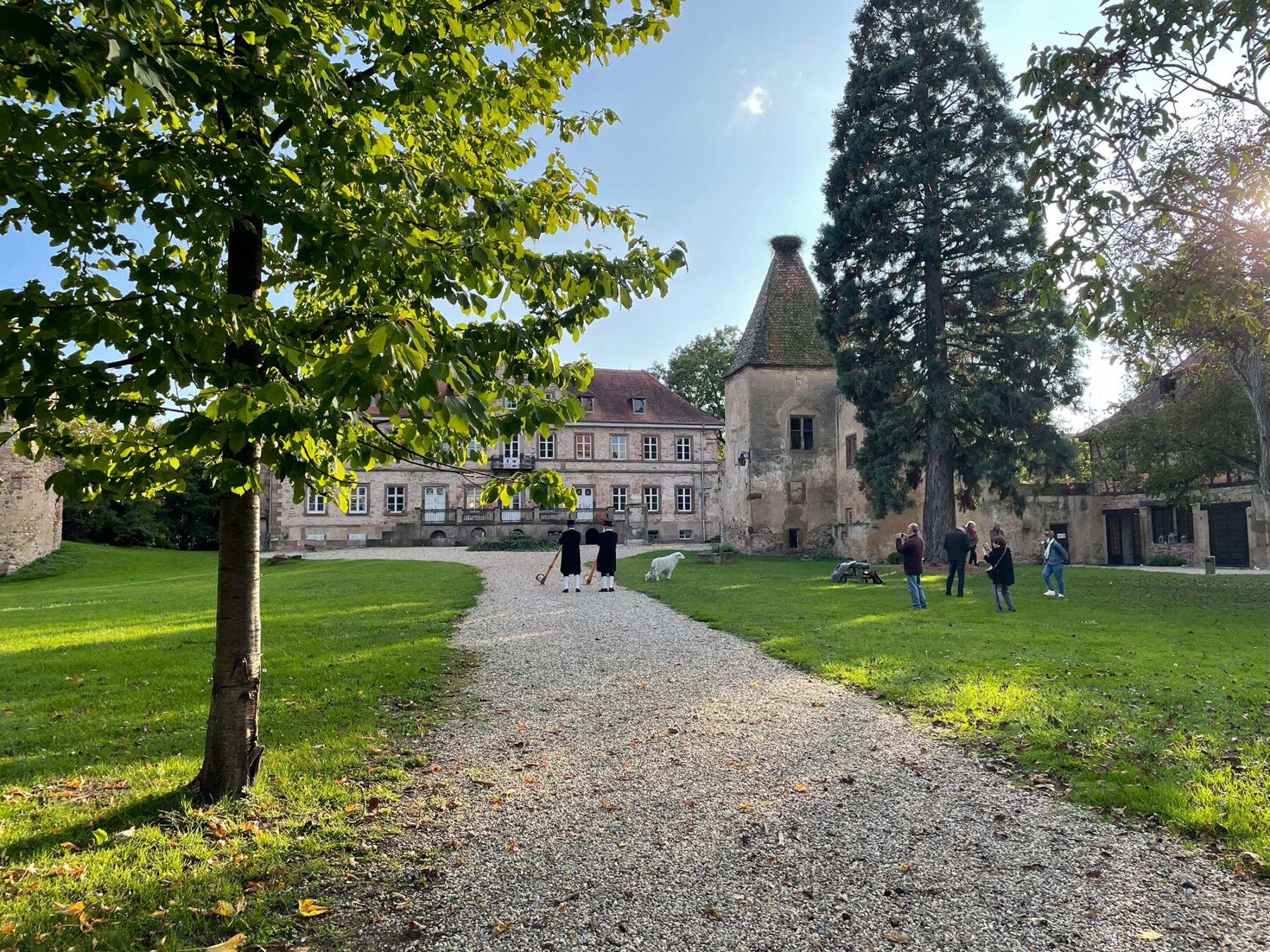 Nach dem Gottesdienst führte ein Spaziergang bei sonnigem Herbstwetter zum Festsaal „Salle de Landsberg“. Dort erwartete die Gäste ein traditionelles elsässisches Essen: Choucroute, Sauerkraut mit Würsten und Fleischstücken. Die Portionen waren so großzügig bemessen, dass viele Gäste ihre Teller kaum leeren konnten.
