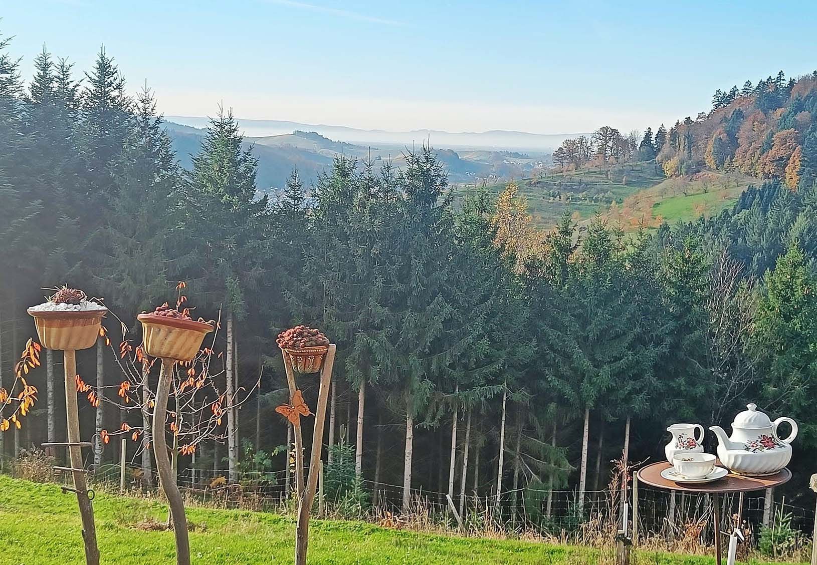 Der steile Anstieg bei strahlendem Sonnenschein und sehr angenehmen Temperaturen wurde sogleich mit einer tollen Aussicht Richtung Oberkirch und Nussbach, sowie ins hintere Renchtal und die Seitentäler von Lautenbach belohnt.