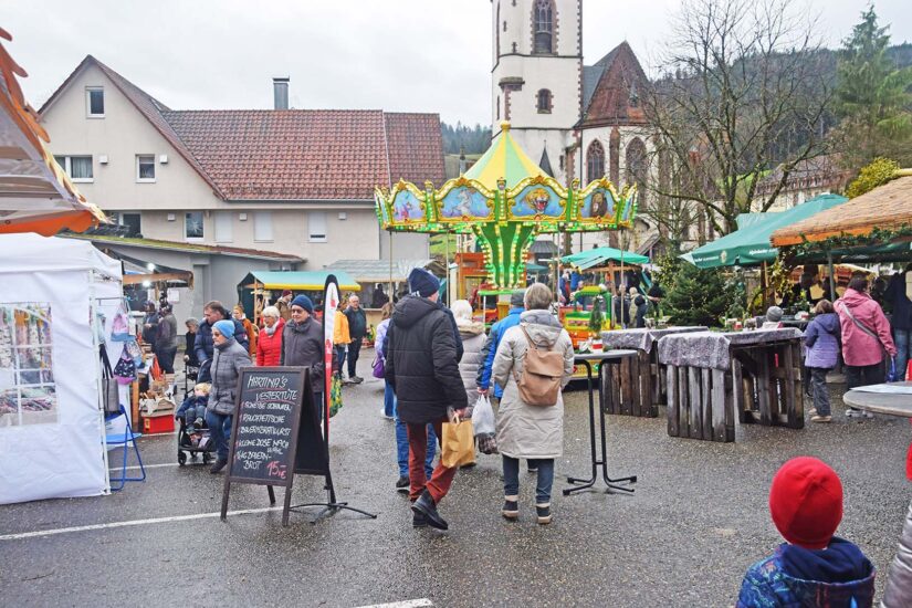 Der Arbeitskreis Weihnachtsmarkt organisierte das Fest, an dem weit mehr als einhundert Personen ehrenamtlich mitwirkten. Marktmeister Lukas Spitzmüller sorgte für einen reibungslosen Aufbau. Am Samstagabend lud das Motto „treffe, schwätze, schnaige“ zum gemütlichen Einstieg ein. Trotz nasskalter Witterung kamen viele Besucher. „Felix der Glückliche“ sang ab 18 Uhr stimmungsvolle Lieder; Kerzen und Feuerschalen sorgten für Wärme und Atmosphäre.