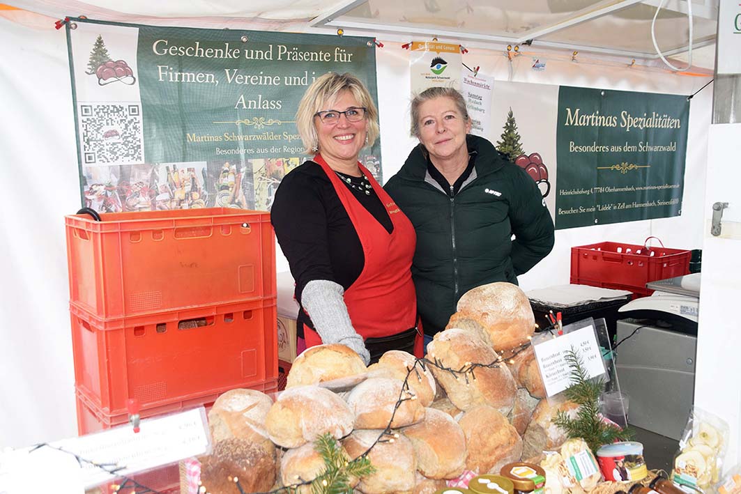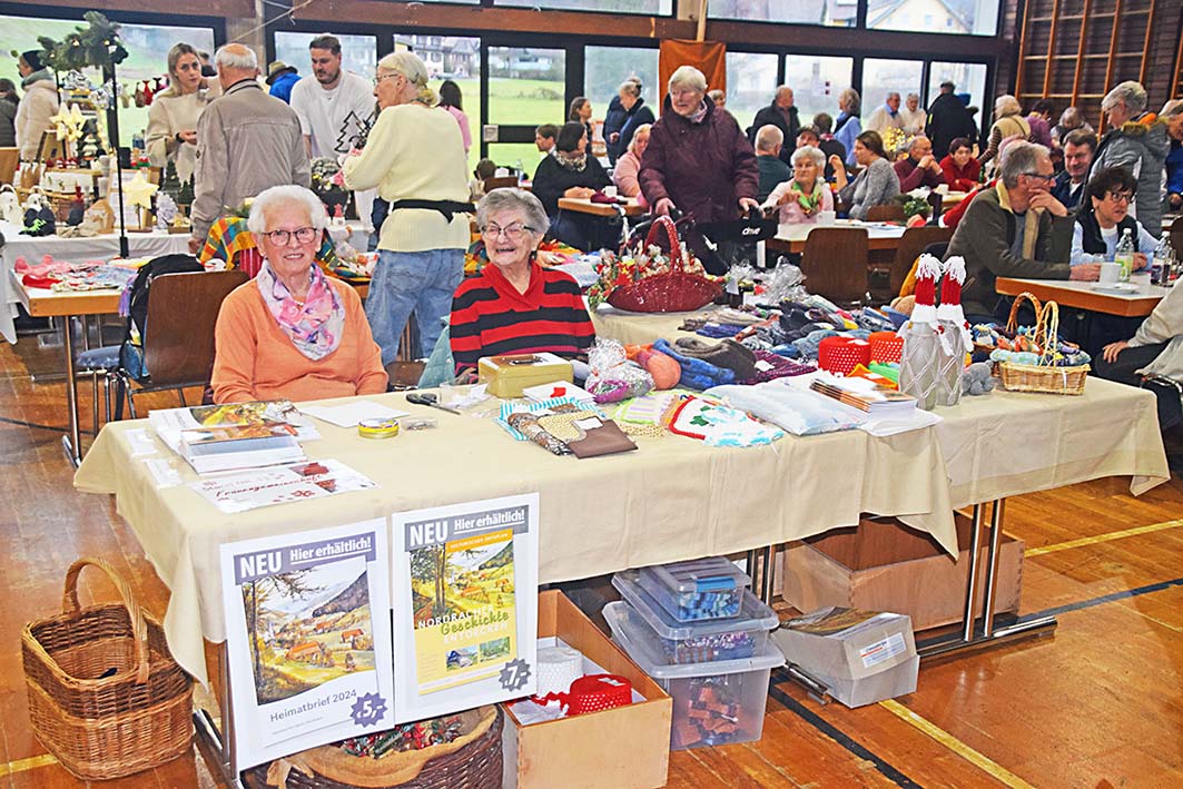 Am Sonntagmorgen eröffnete Dieter Furtwengler den Weihnachtsmarkt und führte durch das Programm. Vor allem am Nachmittag füllte sich das Gelände. 36 kunsthandwerkliche und regionale Anbieter präsentierten ihre Waren – ausschließlich handgefertigte Stücke. Das Angebot reichte von Baumschmuck, Getöpfertem, Socken und Puppenkleidern bis zu Holzarbeiten, Filzkunst, Strohschuhen, Seifen, Krippen, Vogelhäuschen und vielem mehr. Kulinarisch war die Auswahl groß: von Weihnachtsgebäck, Brot, Wurst und Käse über Honigprodukte und Schnäpse bis hin zu Flammkuchen, Schupfnudeln, Gulaschsuppe, Raclette und Striebeli. Feuerzangenbowle, Glühmost, Heidelbeerglühwein und heiße Cocktails sowie die üblichen Getränke waren im Angebot.
