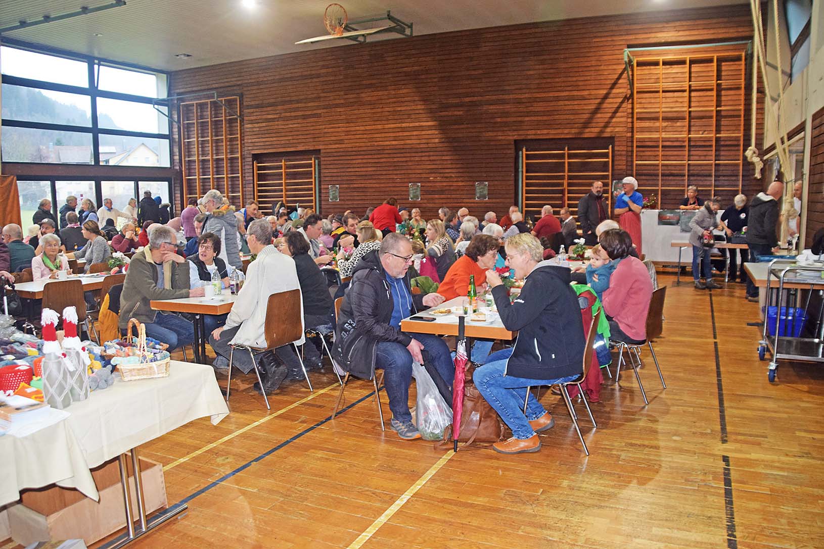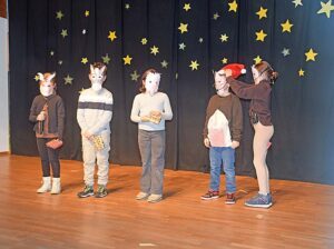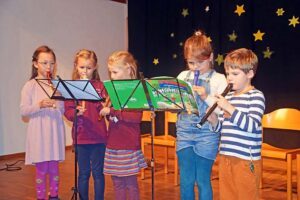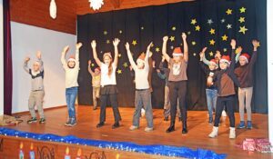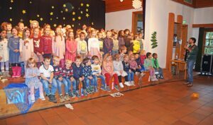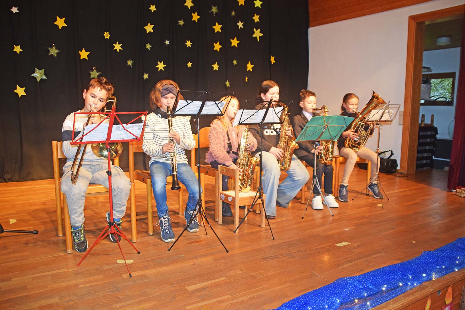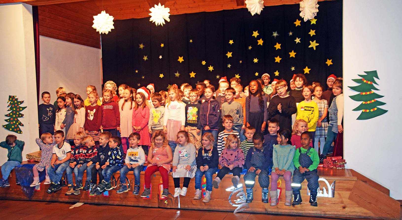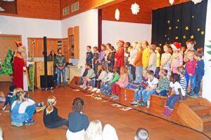 Einmal mehr Höhepunkt war das Programm des Kindergartens und der Grundschule im vollbesetzten Saal des Bürgerhauses. Unter der Leitung von Lehrer Yannick Lupfer zeigten die Kinder Musikstücke, Tänze und kleine Szenen. Die Jungmusiker spielten Weihnachtslieder, die Kinder sangen stimmgewaltig. Tänze der Klassen 1 und 4 sowie ein Sketch („Das Weihnachtskänguru“) rundeten den Auftritt ab. Nikolaus alias Frank Wieland lobte die Kinder und belohnte sie mit Weckmännern.