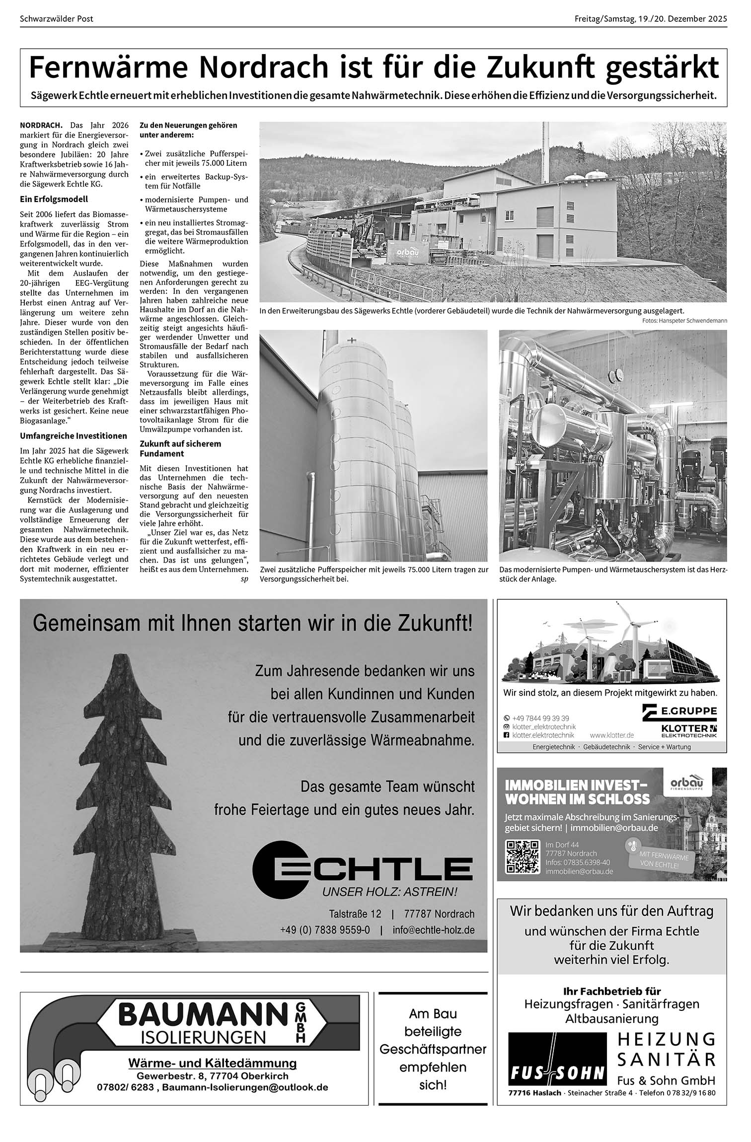 Sägewerk Echtle erneuert mit erheblichen Investitionen die gesamte Nahwärmetechnik. Diese erhöhen die Effizienz und die Versorgungssicherheit.
