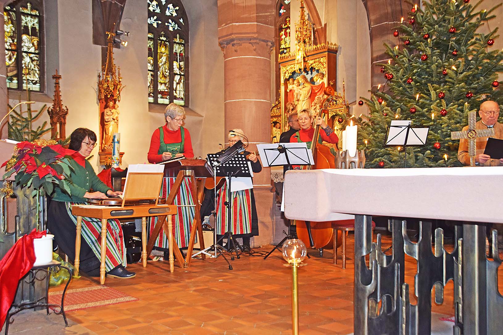 Der Wandererchor aus Wind-schläg besteht aus elf Sängern, die von Peter Basler dirigiert werden. Sie sangen neun Lieder der „Deutschen Bauernmesse“, zumeist mit musikalischer Begleitung der Stubenmusik, die eine ideale Ergänzung bildete. Die Kirchenbesucher waren sichtlich ergriffen.