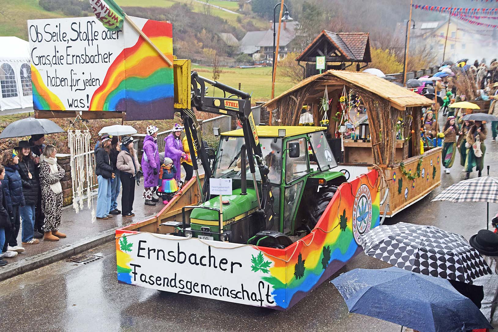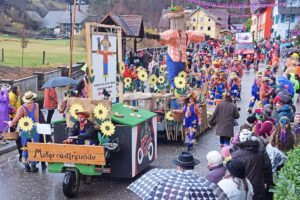 Zum Glück legte der leichte Regen während des Umzugs eine Pause ein. Nordracher Fasentgemeinschaften hatten das Fasentmotto „Von Almhütte bis Reisfeldrand, in Nordrach feiern Bauern Hand in Hand“ wieder mit viel Witz und Kreativität umgesetzt.