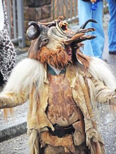 Aus Hochemmingen, Stadtteil von Bad Dürrheim, kamen die „Schwarzwälder Glut-Wyber“ mit dem “Jauner“, der einst den Ort in Brand gesetzt hat. Furchteinflößend ihre grimmige Maske und die schwarze Kleidung, an der Flammen hochzusteigen schienen. Sogar Rinderzüchter aus Texas, dargestellt von den Nordracher „Fasentfegern“, waren gekommen und führten ein Rind mit sich, auf dem Kinder reiten durften.