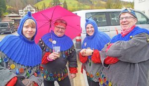 Glücklicherweise hörte der Regen zu Umzugsbeginn fast auf und etwa zweimal zweihundert Beine setzten sich um 15 Uhr vom Kindergarten aus in Bewegung. Das „gitzig, gitzig Rufen“ hallte nun durchs Tal.