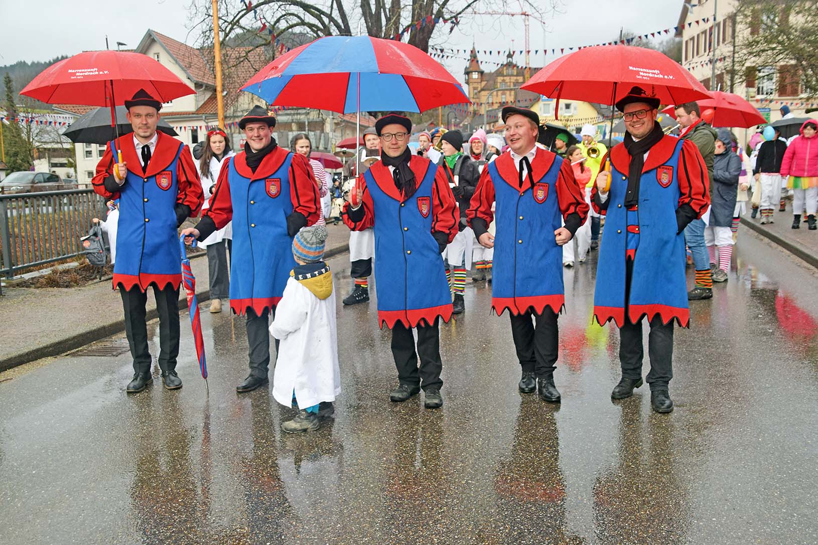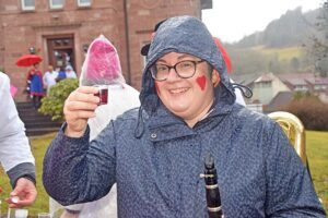 Zum „Schmutzige Dunschdig“ zog der Hemdglunkerumzug durch Nordrach – angeführt von Narrenräten und Kapelle, begleitet von Süßigkeitenregen aus Fenstern und guter Laune auf nassen Straßen.