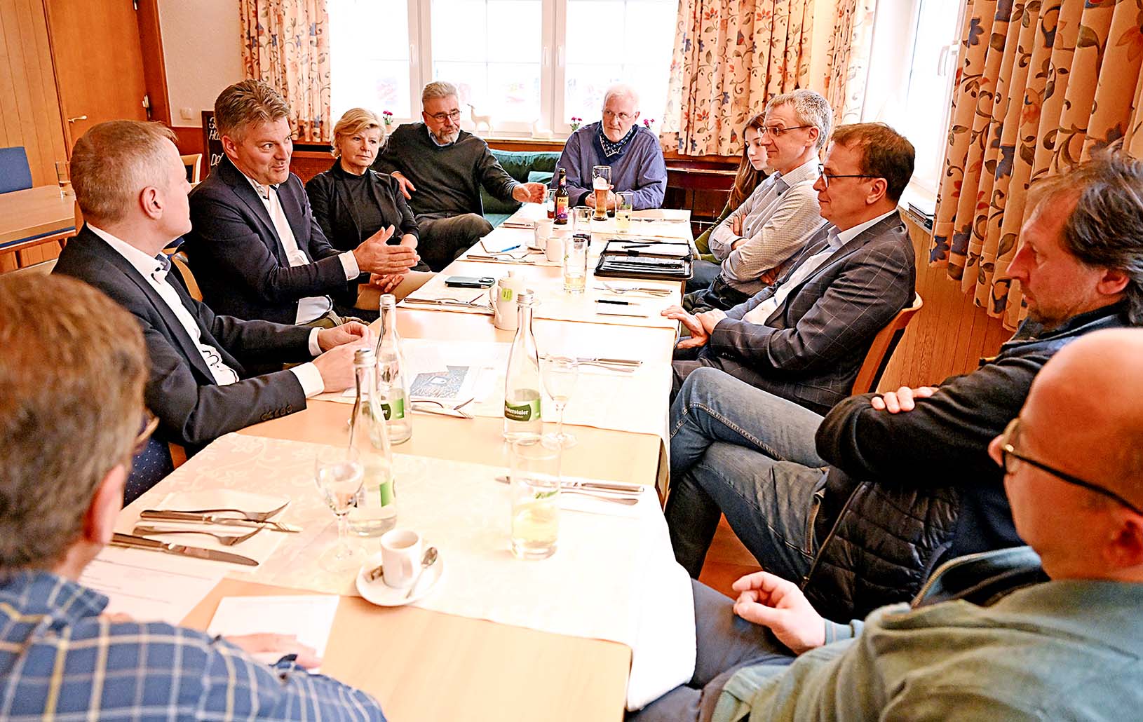 Nach der Vorstellungsrunde kam man gleich zur Sache. Zahlreiche Problembereiche im kommunalen wie im nationalen Bereich wurden angesprochen: Energiekosten und Bürokratie, Datenschutz, Steuer- und Arbeitsrecht, Länderfinanzausgleich, Renten- und Krankenversicherung, Ärztemangel und Zollabkommen mit den USA.