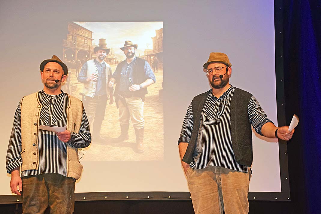 Ondräs und Bernhard (Andre Armbruster und Björn Späth) führten durch das Programm und erzählten zwischen den Programmpunkten zahlreiche Gschichtle aus dem Dorfgeschehen.