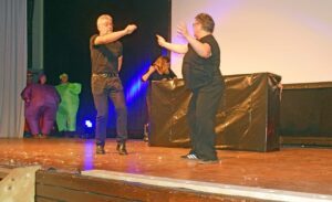 Der „Honsel Projekt Chor“ gefiel mit einer originellen Pantomime-Nummer. Nur mit Gebärden zur jeweils passenden Melodie erzielte er einen Lacherfolg nach dem anderen.