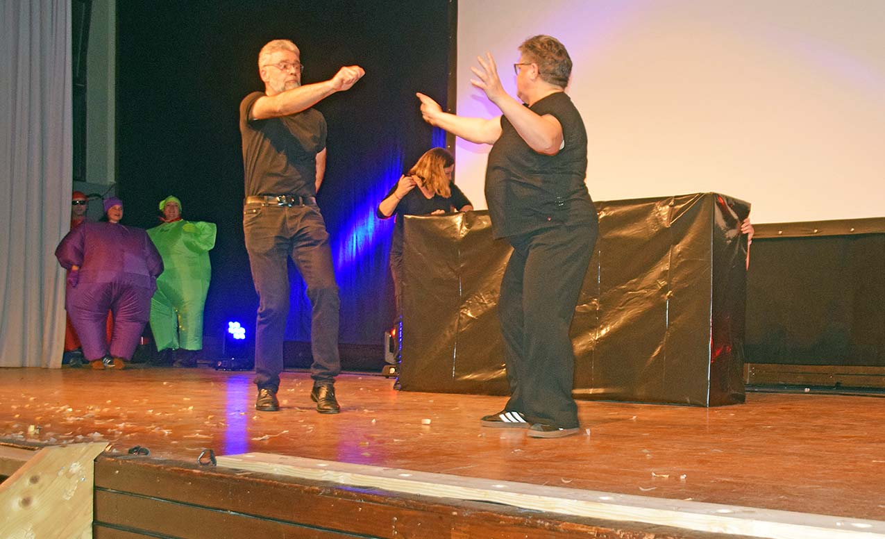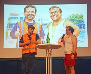 Jan Baumann und Claudius Welle spielten sich danach als Haus- und Badmeister die Bälle zu, suchten einen neuen Hallenpapst und wussten erstaunliche und lustige Vorkommnisse zu berichten.