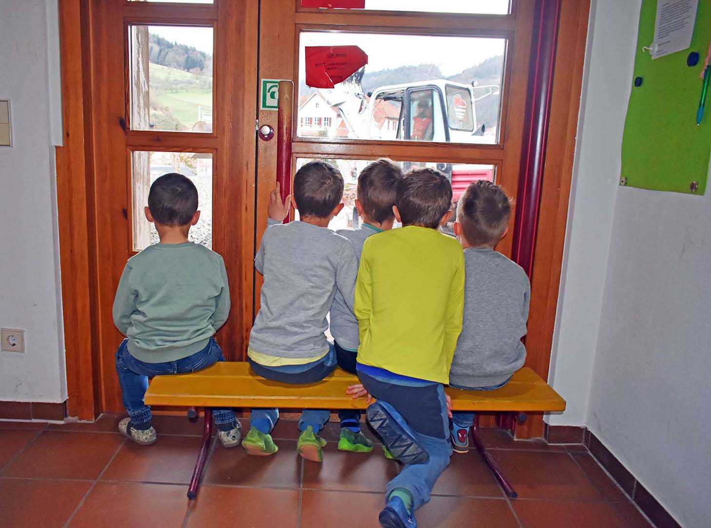 Von hier aus verfolgen die Kinder das Treiben auf der Baustelle. Sie beobachten genau, stellen Fragen und tauschen sich untereinander aus. Neugier und Entdeckerfreude bekommen so viel Raum.