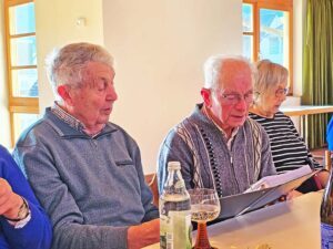 So erklang ein abwechslungsreiches Wunschkonzert, das mit der „Schwarzwaldmarie“ begann und nach zweieinhalb Stunden, unterbrochen von zwei kurzen Pausen, mit „Kein schöner Land“ und „Du liegst mir im Herzen“ endete. Dazwischen erklangen viele Lieder, die man in jugendlichen Jahren gesungen hat und die nun wieder aufgefrischt wurden. Alle waren sich am Ende einig, dies soll nicht der letzte Nachmittag mit Gisela und Karl-Heinz Hug gewesen sein. Mit einer Gulaschsuppe endete diese fröhliche Veranstaltung.