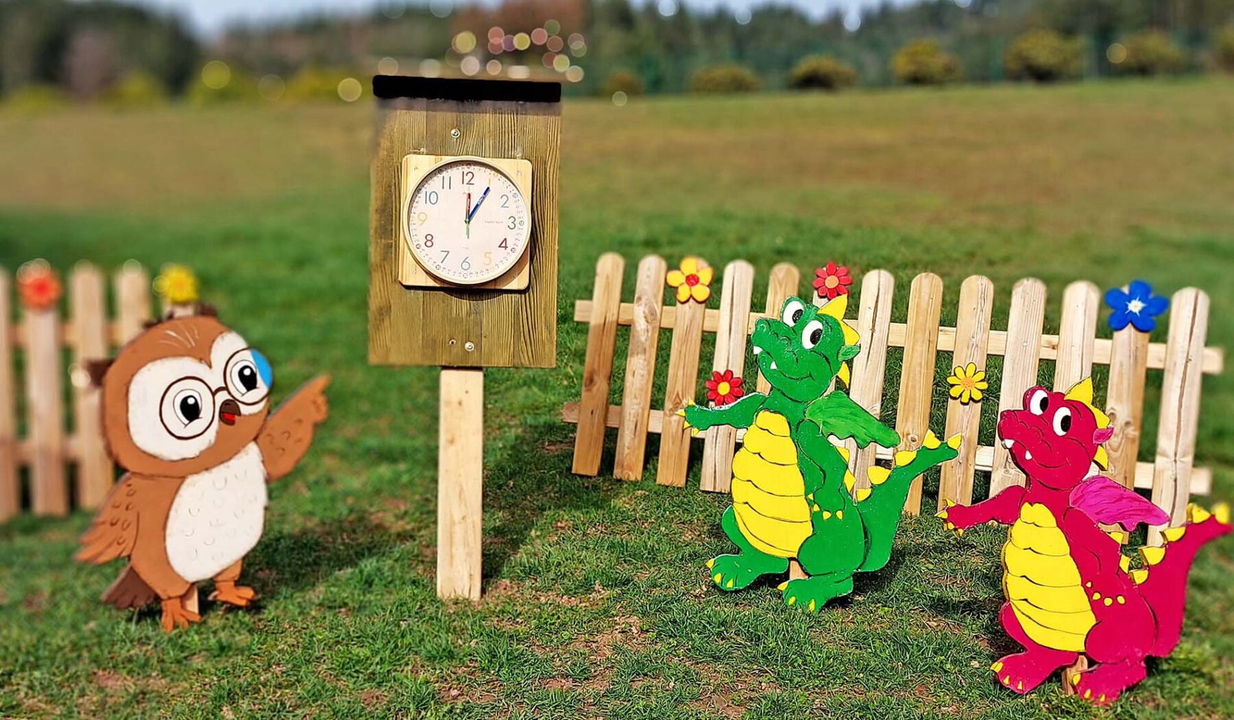 Vom 13. März bis zum 12. April verwandelte sich der rund zwei Kilometer lange Rundweg in eine bunte Abenteuerlandschaft. 16 Rätselstationen und drei Aktivposten, geschmückt mit unzähligen Holzfiguren, bemalten Blumen und leuchtenden Windrädern, säumten die Strecke. In diesem Jahr bekamen die bekannten Drachenkinder NorDi und Lilli Verstärkung durch die kleine Eule Eulalia.