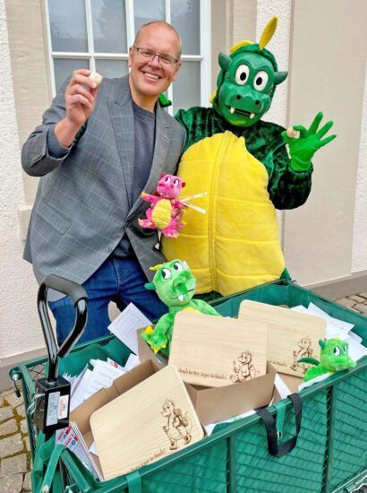 Wie groß das Interesse war, zeigte die Auswertung des Gewinnspiels: Beeindruckende 4.244 Kinder warfen ihren ausgefüllten Flyer in den Briefkasten. Bürgermeister Carsten Erhardt zog nun gemeinsam mit NorDi die zwölf Gewinner.