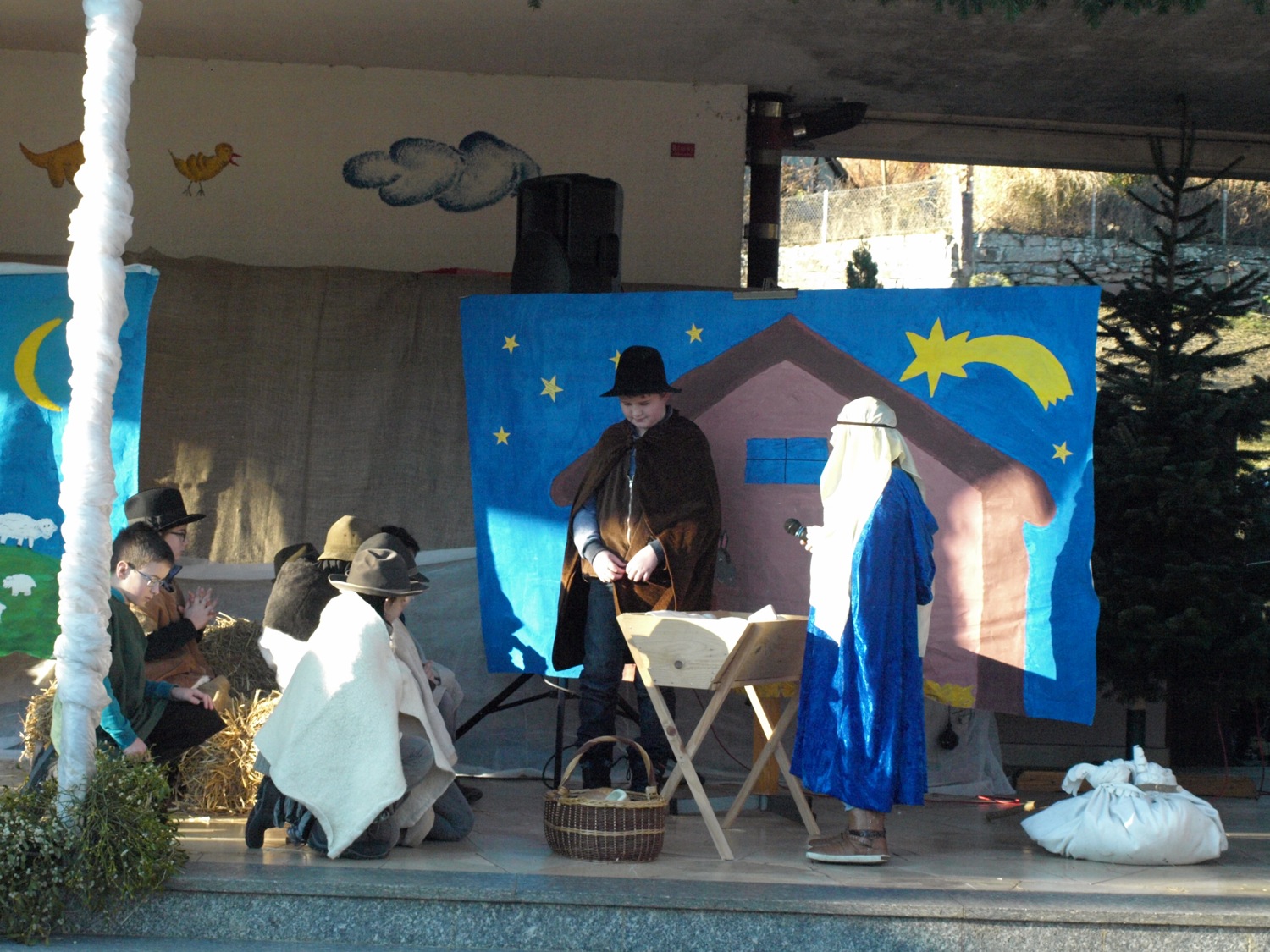 Dazu gehört auch die von den Besuchern geschätzte Programmgestaltung, in der Gedanken zu Advent und Weihnachten sowie die kindliche Freude auf das bevorstehende Fest im Vordergrund stehen. Dies kam schon in den Texten und Liedern bei einem geistlichen Impuls zur Eröffnung der Veranstaltung zum Ausdruck, gestaltet mit Texten und Liedern von Gemeindereferentin Judith Müller zusammen mit den Geschwistern Mirjam, Helga und Julia Rombach. »Weihnachten heißt Freude«, sang anschließend der Grundschulchor unter der Leitung von Manuela Isaak und forderte alle auf: »Feier mit, sei dabei, denn heute darfst du glücklich sein.« Es war der Auftakt zu ihrem Krippenspiel »Stern über Bethlehem«, in dem die Kinder in modernen Songs und Dialogen die Weihnachtsgeschichte in Szene setzten.