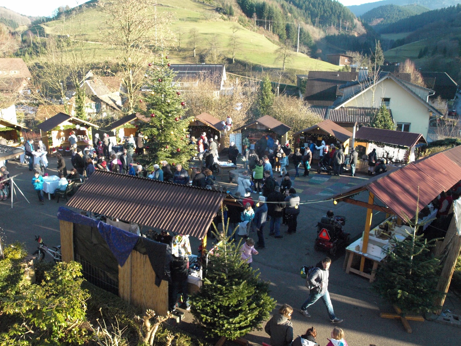 Abwechslungsreich war wieder das Angebot im Weihnachtsdorf, zu dem die Besucher mit der Pferdekutsche fahren konnten. Angeboten wurden Glühwein und Kinderpunsch, Weihnachtsgebäck, Bratwürste und Bratäpfel aus dem kleinen Holzherd, edle Brände und Liköre auch zum Probieren, Bastelartikel, Weihnachtsfloristik und Baumschmuck. Über dem offenen Feuer konnte man Stockbrot und Waldspeck rösten und im Schulgebäude sorgte »Posthörnle«-Wirtin Maria Lehmann mit ihrem Team mit herzhaften Gerichten für das leibliche Wohl ihrer Gäste.
