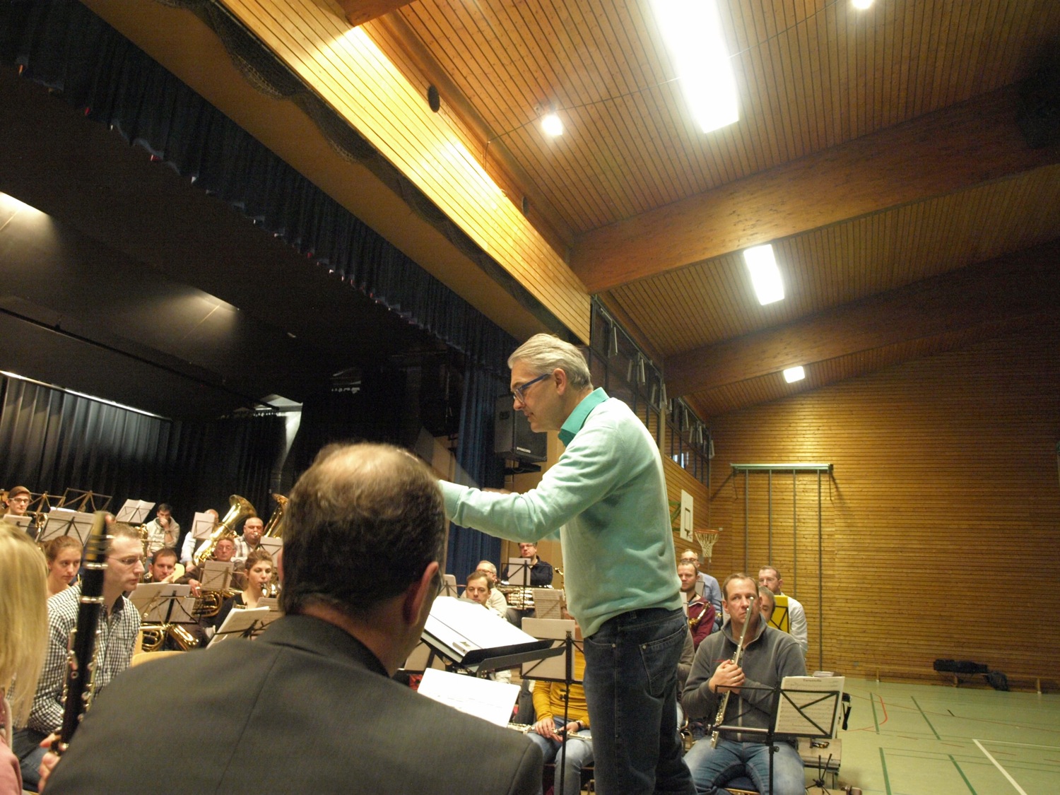 So ist es für die Besucher auch eine interessante Abwechslung, wenn nach der Pause zunächst einmal eine kleine Blechbläsergruppe in dem Stück »Two Bagatelles« (Alfred Reed) ihr Können demonstriert und anschließend ein Holzbläserensemble bei »Rikudim«, vier israelische Volkstänze von Jan van der Roost, das ganze Klangspektrum der verschiedenen Klarinetten ausreizt. »Die ganze Bandbreite der Tänze ist im Wesentlichen abgedeckt«, sagte Dirigent Siegfried Rappenecker zum Programm und mit einem Schmunzeln versprach er, damit »die Weihnachtslieder aus den Ohren zu bekommen.«