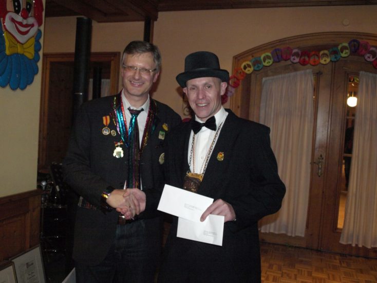 Sehr persönliche Erinnerungen an die Entwicklung der Narretei im Dorf grub Ehrenzunftmeister Heinz Haubold jun. aus, angefangen als dreijähriger Bub. Zu markanten Jahreszahlen in seiner Chronik stimmte er passende Ohrwürmer an, die die Gäste begeistert aufnahmen und mitsangen. In allen Reden kam auch die dankbare Erinnerung an die verstorbenen Heinz Haubold sen., Franz Müller, Paul Nock, Burga und Wilhelm Huber zum Ausdruck, die mit viel Einsatz und närrischem Geist zur erfolgreichen Entwicklung beigetragen haben.