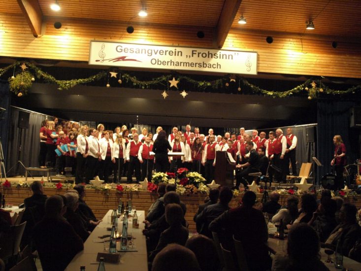 Foto: Hermann KornmayerEs war beileibe kein fader Aufguss bekannter Lieder, den der Chor dem Publikum vorsetzte. Im Gegenteil, denn Ohrwürmer wie »The lion sleeps tonight«, »Adiemus« oder »We are the world« klangen so frisch wie beim ersten Mal und es war ein Hörgenuss, wie prächtig die Stimmen des Jugendchors »Canto Amici« sowie der Frauen und Männer des »Frohsinn« miteinander harmonierten.