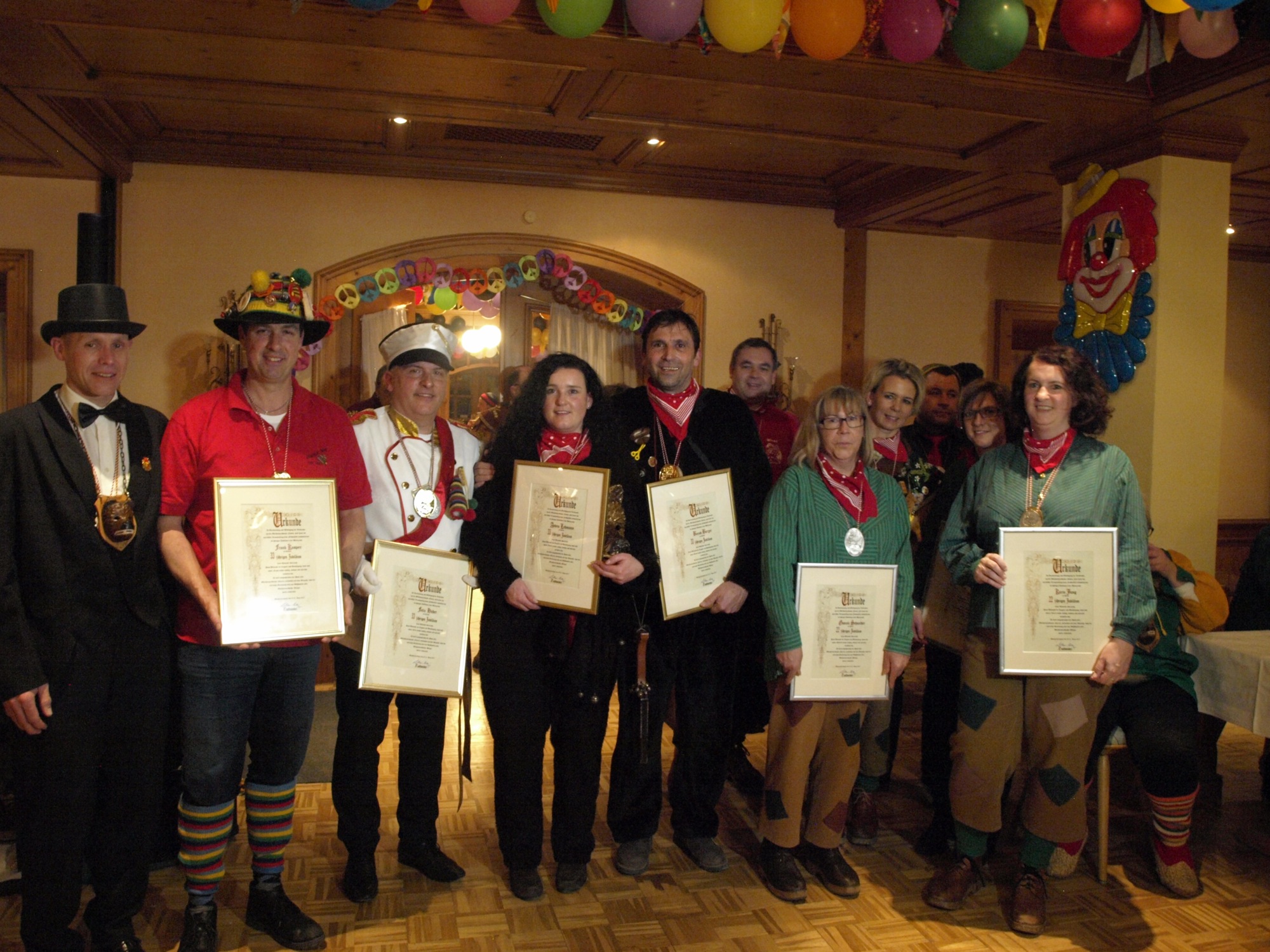 Mit Dank für ihren Einsatz zum Erhalt des fastnächtlichen Brauchtums ehrte Zunftmeister Lothar Killig langjährige Mitglieder. Den Zunftorden in Silber für 22 Jahre erhielten Gabriele Schneider, Henry Huber, Tanja Huber, Karin Jung, Katja Lehmann, Maik Fritsch, Manuela Kornmeier, Raphael Hildebrandt und Winfried Ficht.