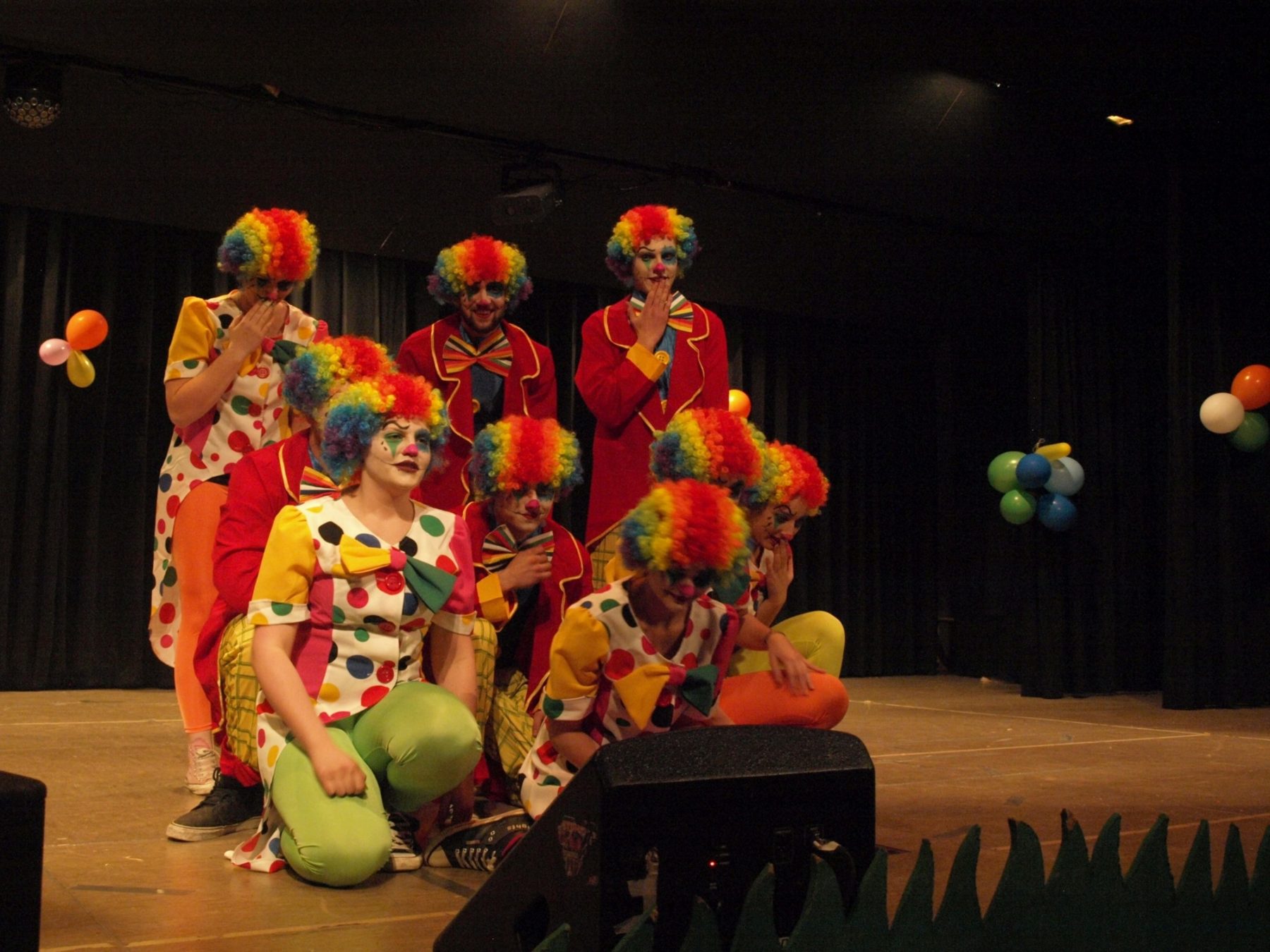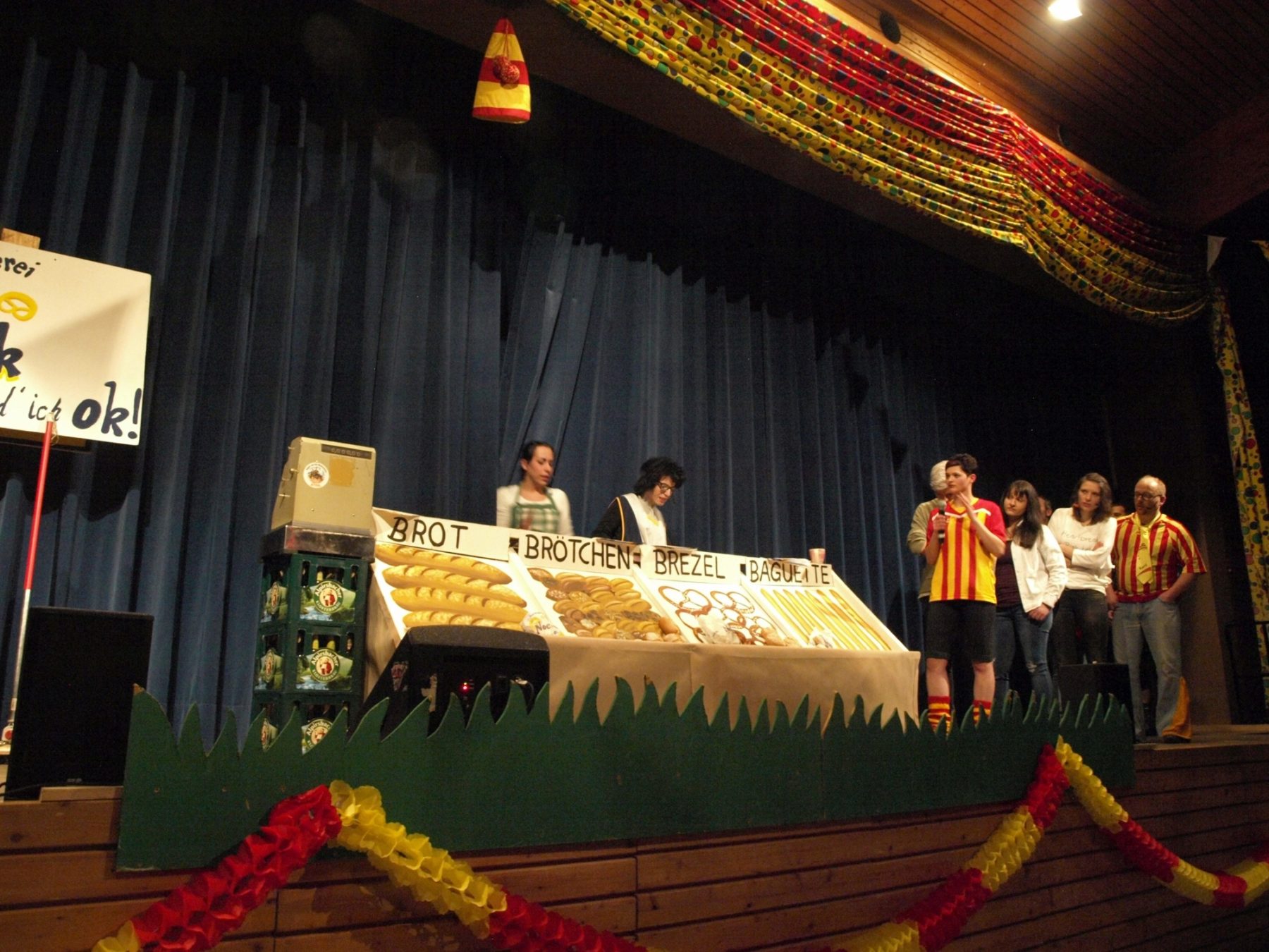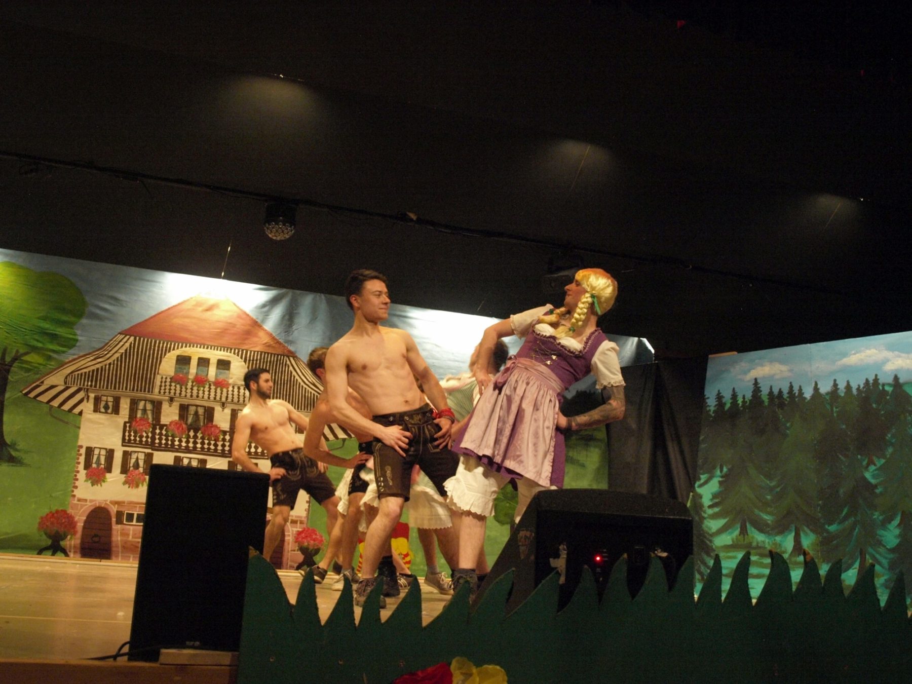 Gespielte Witze, kurz und treffend auf einer Drehbühne inszeniert, und zwei Tänze ergänzten das Programm. Die Männer demonstrierten nicht nur zur Freude der weiblichen Besucher elegante Hüftschwünge in Dirndl und Lederhosen und die Dörfle-Tänzer setzten im Clownskostüm einen furiosen farbenprächtigen Schlusspunkt.