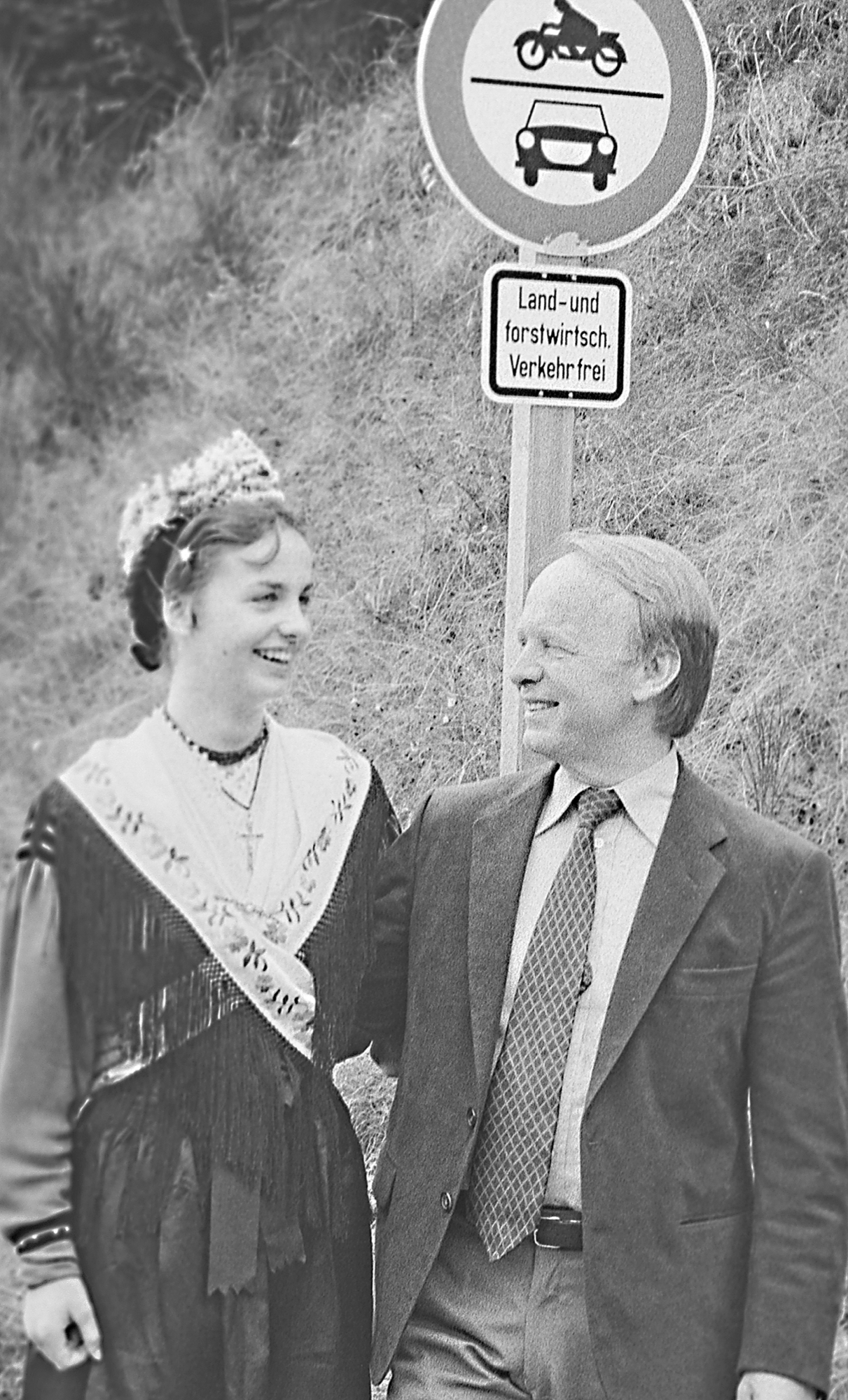 Lösung: Der Anlass für dieses Bild ist nicht allzu lange her. Es wurde am 26.9.1981 aufgenommen. An jenem Samstag traf man sich zu einem »Wegfest« der besonderen Art, galt es doch, das (vorläufige) Ende des »Beschleunigten Zusammenlegungsverfahrens« (BZV) zu feiern, das nicht ganz zu Unrecht auch als »Jahrhundertwerk« für die Gemeinde Oberharmersbach bezeichnet wurde.