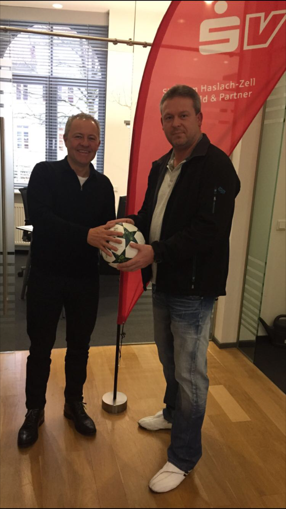 Regelmäßig unterstützt Andy Leopold von der SV-Sparkassenversicherung die Heimatvereine. Passend zum Derby hat sich der Ex-ZFVler nun den SVO ausgewählt und übergab das Spielgerät Vorstandsmitglied Siegbert Lehmann (rechts). Obwohl der Spender ein versierter Versicherungsfachmann ist, konnte er natürlich nicht versichern, dass mit dem Ball eine Sieggarantie verbunden ist. Möge also der Bessere gewinnen und das Spiel den Zuschauern ein spannendes Derby bieten. SVO-Vereinsführung und Mannschaft danken für die großzügige Unterstützung.