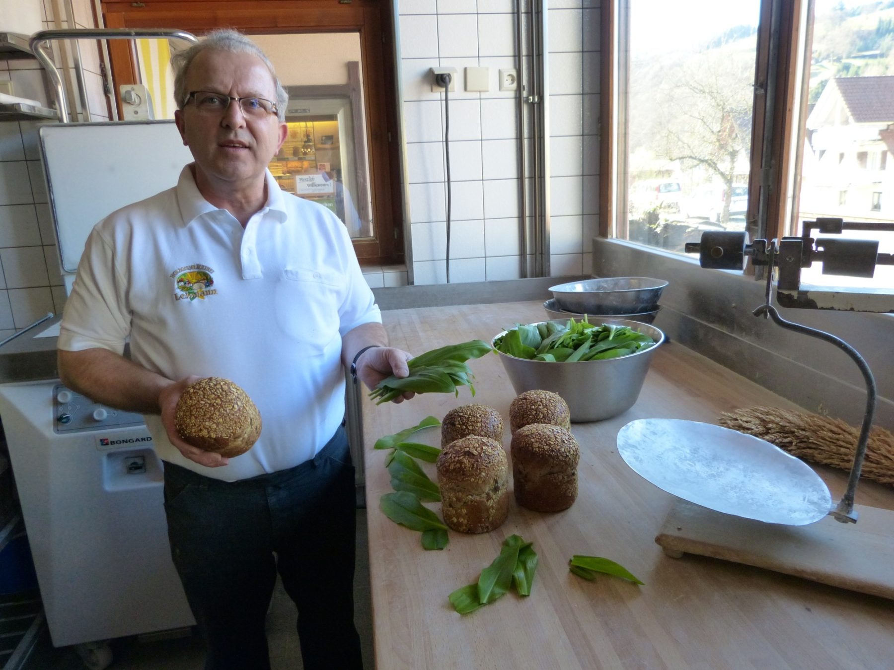 Das hat er schon gemacht, bevor die Bärlauchwochen vor mittlerweile elf Jahren im Dorf initiiert worden waren. »Bei einer Zusammenkunft mit Kollegen in Freiburg hatte sich das als Trend herausgestellt, den habe ich aufgenommen«, erinnert sich der 59-Jährige. »Man muss sich immer etwas einfallen lassen«, betont er, der auf die für den Darm so wichtigen Qualitäten nicht nur des Bärlauchs, sondern desgleichen von Sauerteigen schwört, und erzählt vom Schreckgespenst des hierzulande tagtäglichen Sterbens kleiner Bäckereien.