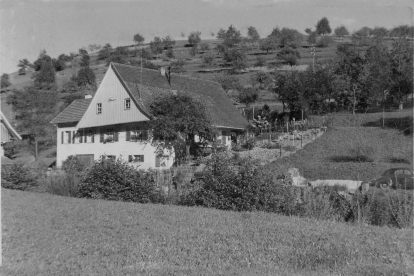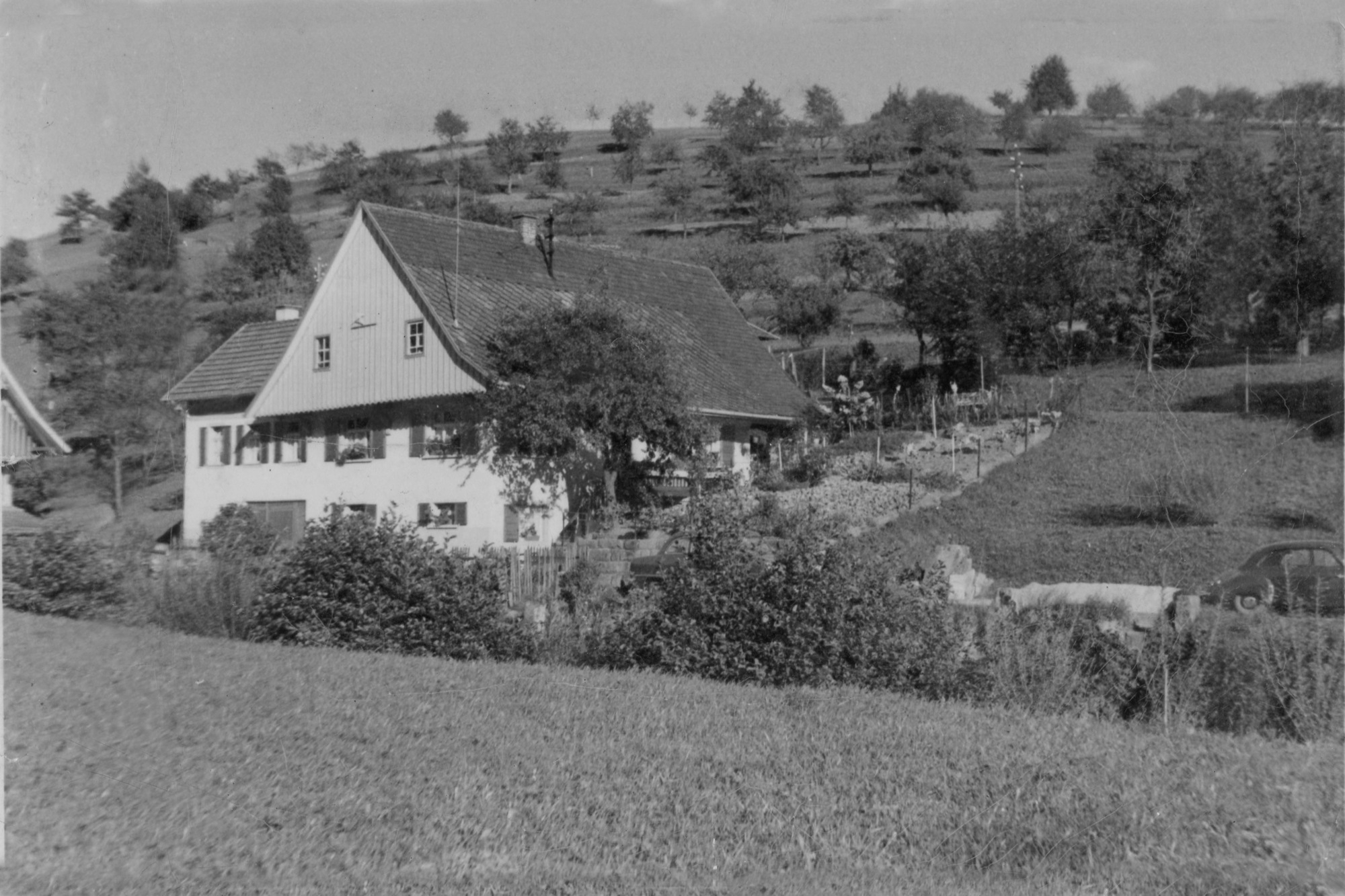 Lösung: Viele Oberharmersbacher fahren tagtäglich an diesem (zugegeben: so nicht mehr zu sehenden) Haus vorbei. Es ist das Anwesen Schöpf in den 1950er Jahren. Es wurde in den 1970er und 1980er Jahren umgebaut. Ganz links ist noch der Giebel des Hauses Kornmayer (»’s Bildsteins«) zu sehen, das 1975 abgerissen wurde. So wurde verkehrstechnisch »’s Schöpfe Kurv« entschärft.