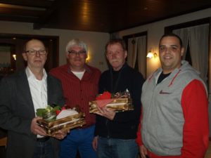 Seit 40 Jahren halten Willi Kornmayer und Hermann Kornmayer dem TC Oberharmersbach die Treue. Mit einem herzhaften Bauernvesper als Präsent dankte Vorsitzender Michael Till den langjährigen Mitgliedern und erinnerte daran, dass Hermann Kornmayer als Nachfolger von Helmut Lehmann zehn Jahre die Geschicke des Clubs leitete. Eric Lehmann sollte für 25-jährige Mitgliedschaft geehrt werden, war aber verhindert. Gewürdigt wurde an diesem Abend auch langjähriges ehrenamtliches Engagement in der Vorstandschaft, der Joachim Haag seit 20 Jahren angehört, davon 16 Jahre im Amt des Kassierers. Seit zehn Jahren arbeitet Markus Furtwengler im Gremium mit, zunächst als Beisitzer und seit 2011 als Jugendwart. Vorsitzender Till dankte auch in Abwesenheit Heiko Echtle, der vier Jahre als Beisitzer und die letzten beiden Jahre als Schriftführer fungierte.