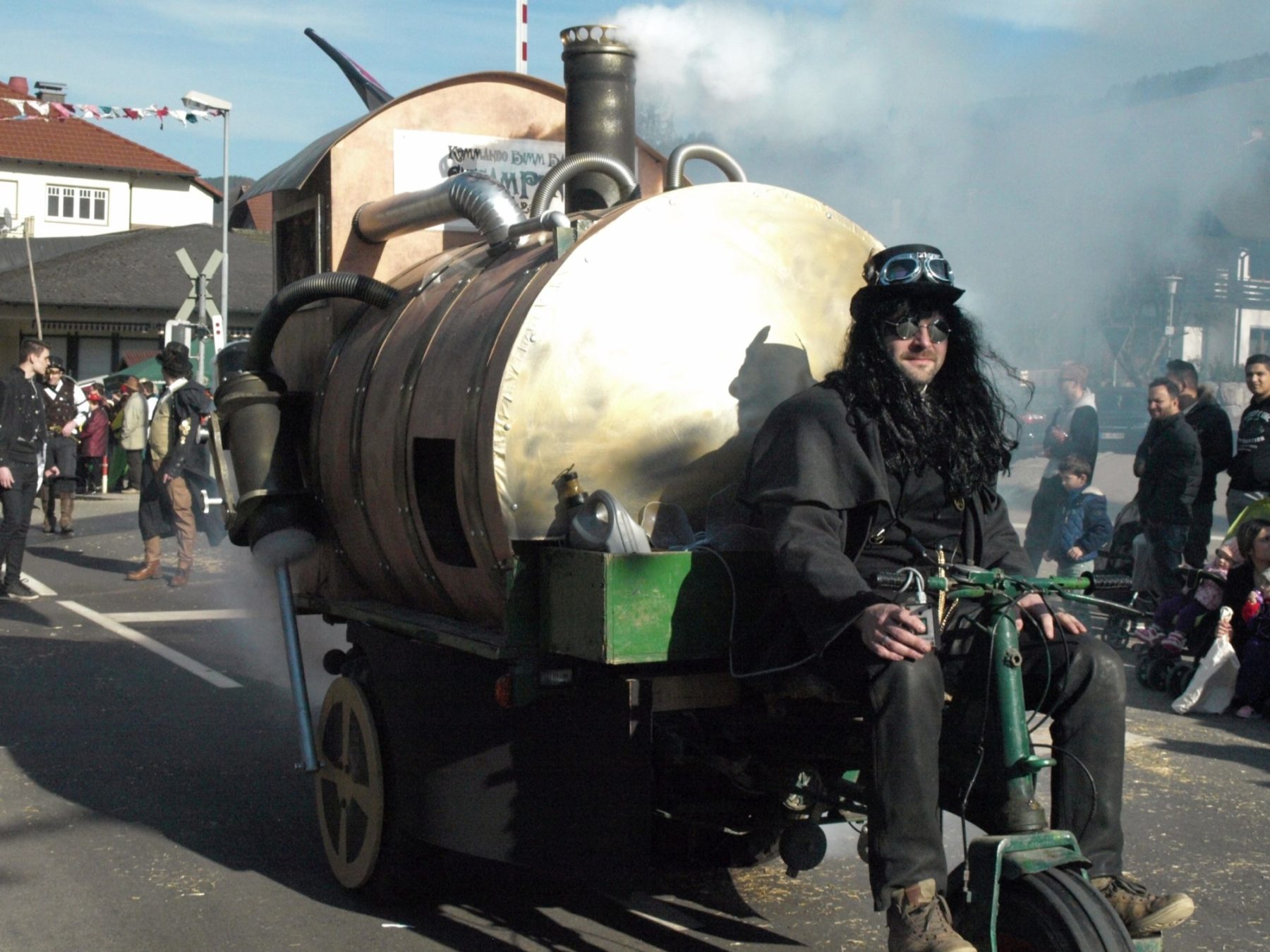 Die aufwändig gestalteten Wagen und detailreichen Kostüme waren eine echte Augenweide und ein Beleg für die kreativ-närrische Fantasie. Gleich hinter Zunftrat, Bären, Schindelmocher und Steinteufel führte die Fasentgruppe (FG) »Kommando Bimm-Bamm« mit Mottokönig Markus Bilharz als »Steampunk« hinter einer qualmenden Dampfmaschine die Reihe der Motivwagen an. Es folgten die gruseligen Gestalten des SVO-Fanclubs, die aus dem Jenseits gereist waren und den Tag der Toten feierten, »Dia de los Muertas«, wie er in Mexiko genannt wird. Die »FG Malente« ließ sich von »Star Wars« inspirieren, und so kämpften die Yedi-Ritter mit ihren Laserschwertern.