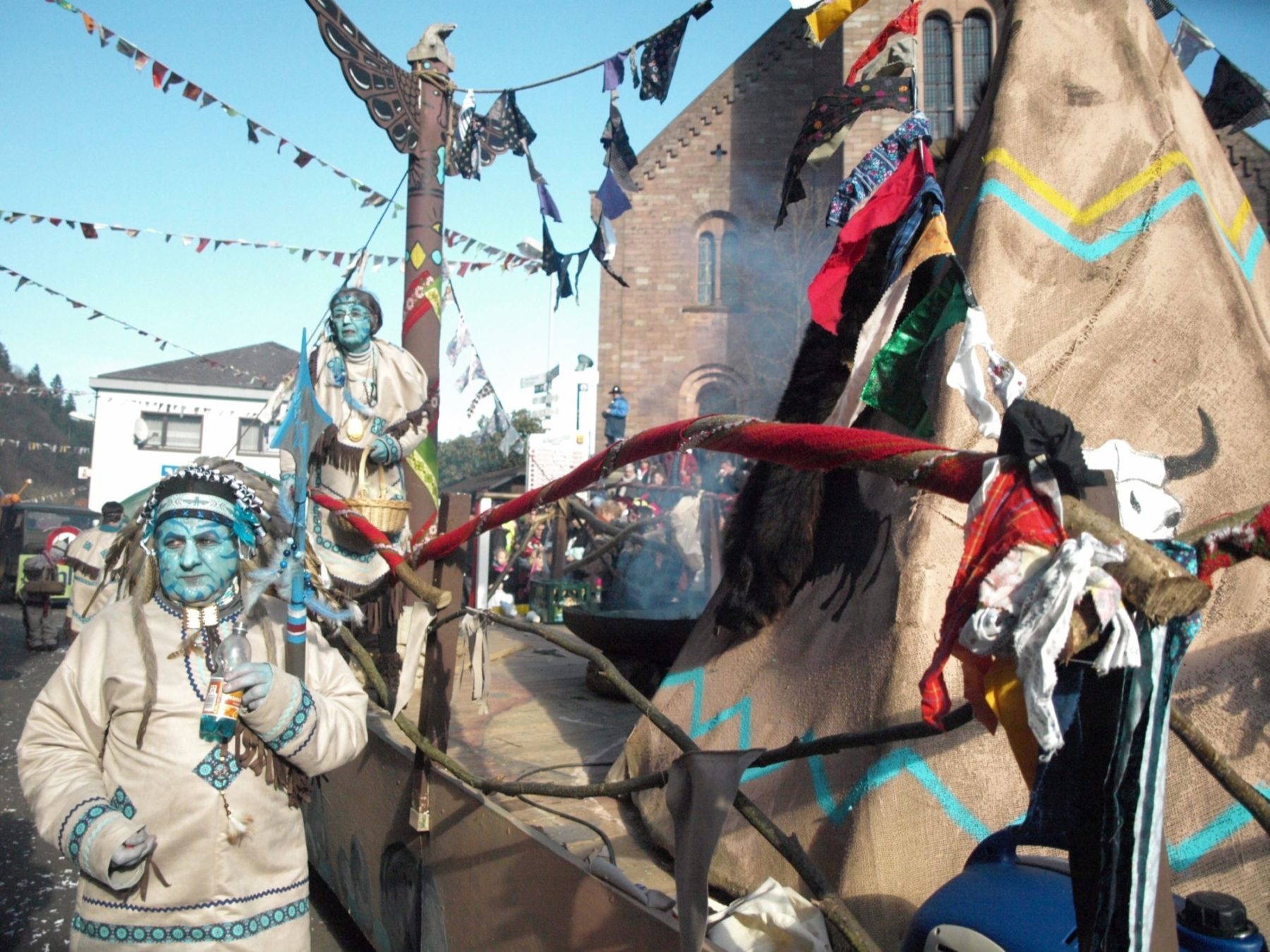 Die goldenen Zwanziger ließen die »Unterdorfer« aufleben. Das überdimensionale Grammophon wurde von einem Oldtimer gezogen, alte Schlager ertönten, zu deren Takten sich die fein gekleidete Herren und Damen mit Bubikopf und Federboa bewegten. »Die Unterdorfer Männer brechen die Herzen der stolzesten Frau’n, weil sie so leidenschaftlich sind«, versicherte Narrenchef Felix Huber den Zuschauern, die er zum Mittanzen aufforderte. Von Pandora aus war als »Avatar-Indianer« die »FG Lehmann« ins Jauschbachtal gereist. Sie ließen sich dort nieder, bauten ihr Tipi auf und entzündeten ein Lagerfeuer. Das Feuerwasser war ihnen schon bekannt, wie Zuschauer feststellen konnten.