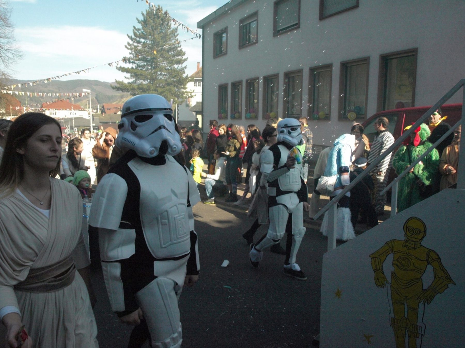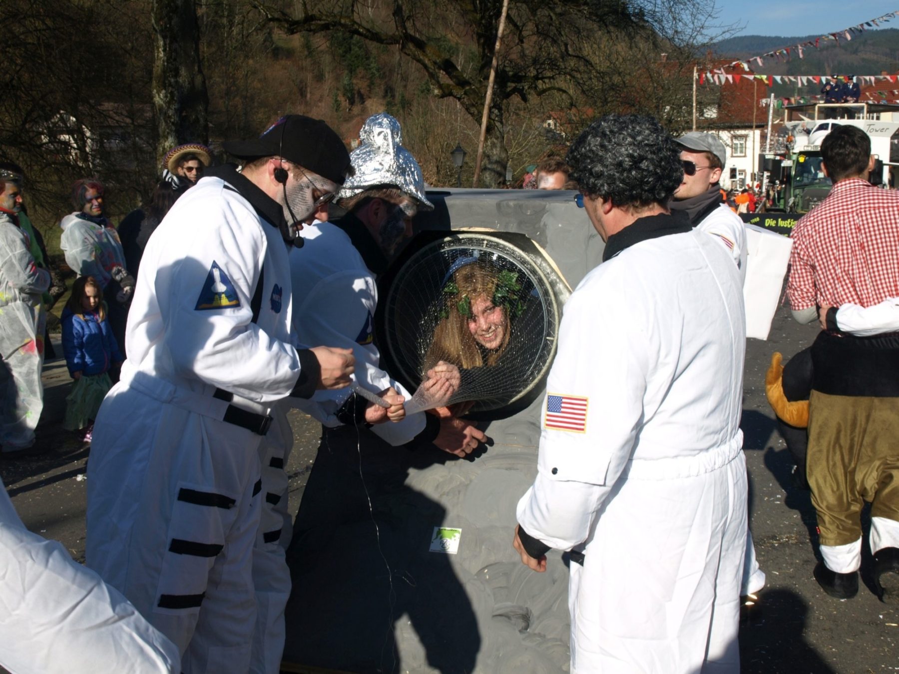 Originell setzten die Narren der »FG Schlauchi« das Umzugsmotto um und wurden mit »närrischer Geschwindigkeit zur Schneckeneinheit.« Ihr Tempo 1 km/h in der 30er-Zone war vorbildlich! Als Raumfahrer starteten die »Zuwälder« zur Venus und waren sich sicher: »Ist die Venus mal erreicht, ist der Liebesakt ganz leicht.« So mancher Zuschauer verschwand im mitgeführten Schwarzen Loch.