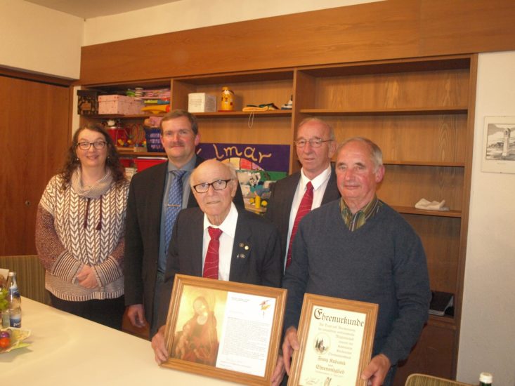 Seit 60 Jahren schon gehört Alfons Hug der Chorgemeinschaft an und war von 1968 bis 2001 ihr 1. Vorsitzender. Auch versah er einige Jahre das Amt des Mesners. Sein langjähriger ehrenamtlicher Einsatz war mit der Verleihung der Landesehrennadel gewürdigt worden. Im Namen des Diözesan-Cäcilienverbandes bedankte sich Präses Alfred Haas und überreichte Alfons Hug eine Urkunde mit dem Bild der Schutzpatronin für die Kirchenmusik.