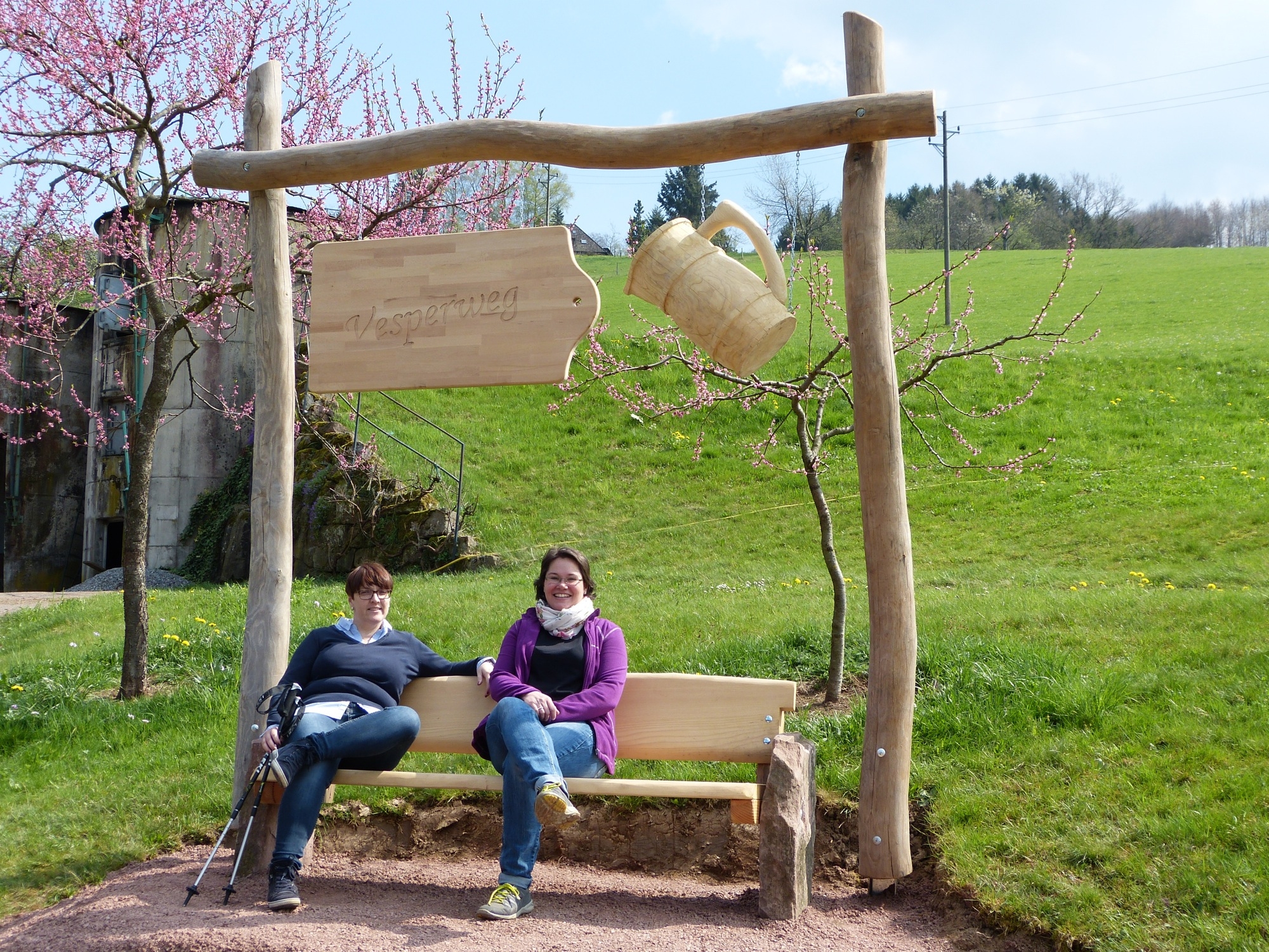 Ebenso einfallsreich umgesetzt ist das Vesperthema bei den anderen gestalterischen Elementen entlang des Premiumweges. Wobei das Dorf das Glück hat, auf ein ganz besonderes Bauhofteam zählen zu können. Denn dem gehört der Kettensägekünstler Stefan Lehmann an, und der wird von seinen drei KollegInnen mit Feuereifer bei der Entwicklung und Gestaltung seiner kreativen Holzideen unterstützt. »Su-per-geil« findet Jill Löffler dieses Team, »wir sind da wirklich gesegnet.«