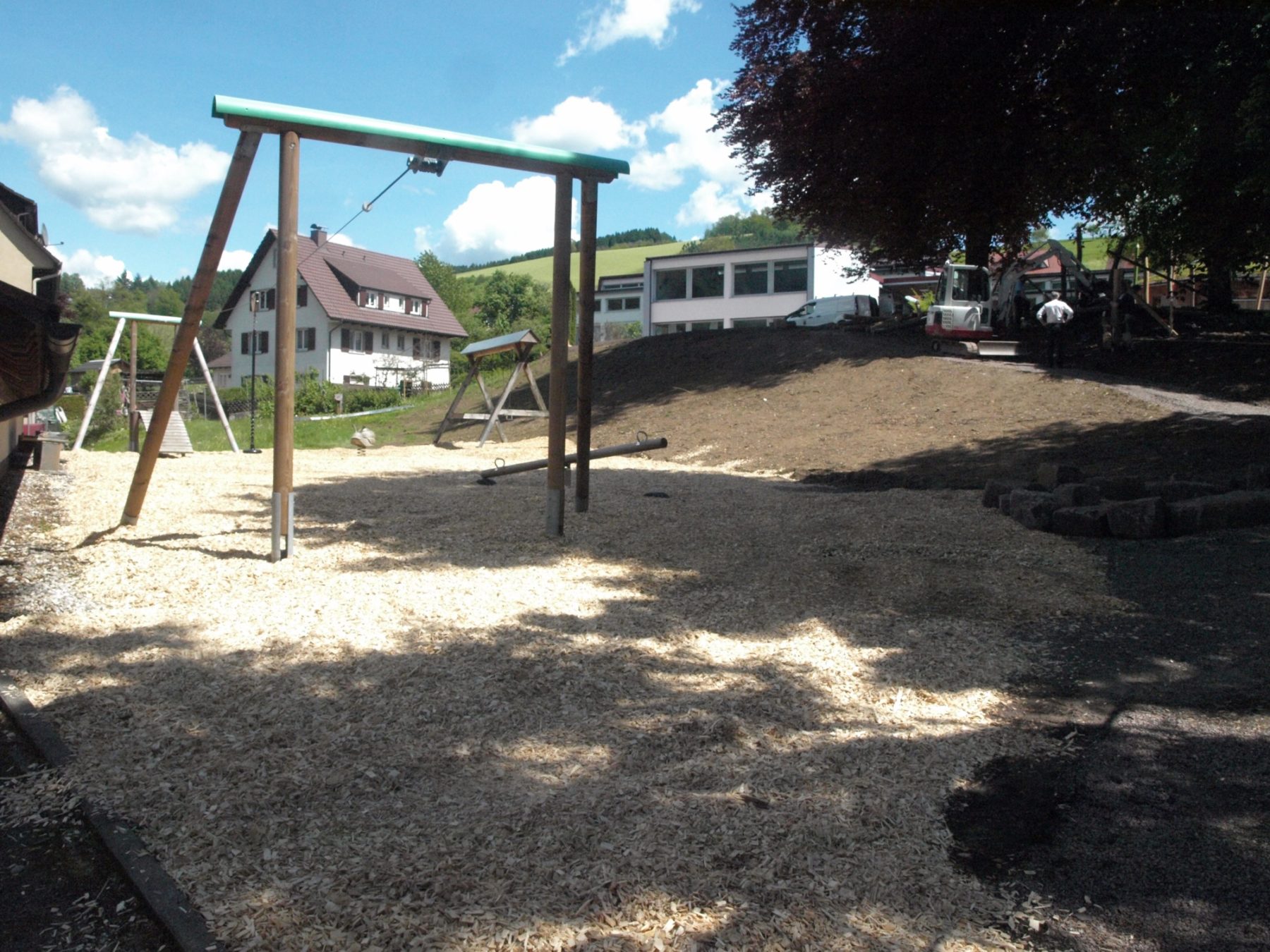 Mit der Feier zum Schuljubiläum am 20. Mai ist die Einweihung des neuen Schulhofs verbunden, der von Grund auf saniert und umgestaltet wurde. Rund 120.000 Euro hat die Gemeinde, so Bürgermeister Siegfried Huber, in ihr »Geburtstagsgeschenk« investiert. »Schule lebt – Schule bewegt« lautete schon immer das Motto, und so ist eine »Bewegungslandschaft« entstanden, die den Zielen des Bildungsplanes gerecht wird. Hier können nach Aussage von Konrektor Steffen Matzat künftig auch Unterrichts- und Sportstunden stattfinden. Die Ausübung von Trendsportarten ist ebenfalls möglich.