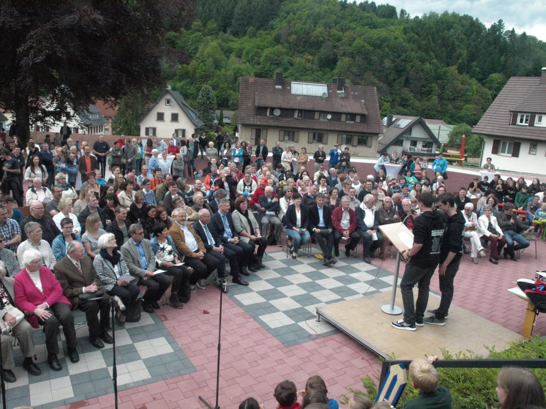 Über 1,5 Millionen Euro, so Huber, hat die Gemeinde für Sanierungsmaßnahmen und neue Räume ausgegeben, um einen von den Bildungsplänen geforderten modernen Unterricht zu gewährleisten. Die Zusammenlegung der Schulen im Ort vor 50 Jahren verglich er mit einer Hochzeit, so dass nun das goldene Ehejubiläum gefeiert werden könne. Doch die Freude darüber ist etwas getrübt, denn durch zurückgehende Schülerzahlen muss die Werkrealschule aufgelöst werden, sodass die »Brandenkopf-Schule« in Zukunft eine reine Grundschule sein wird.