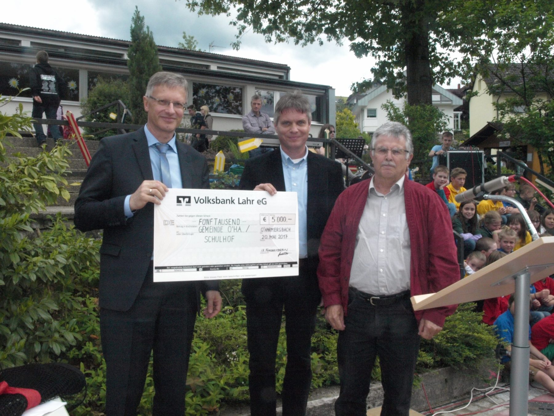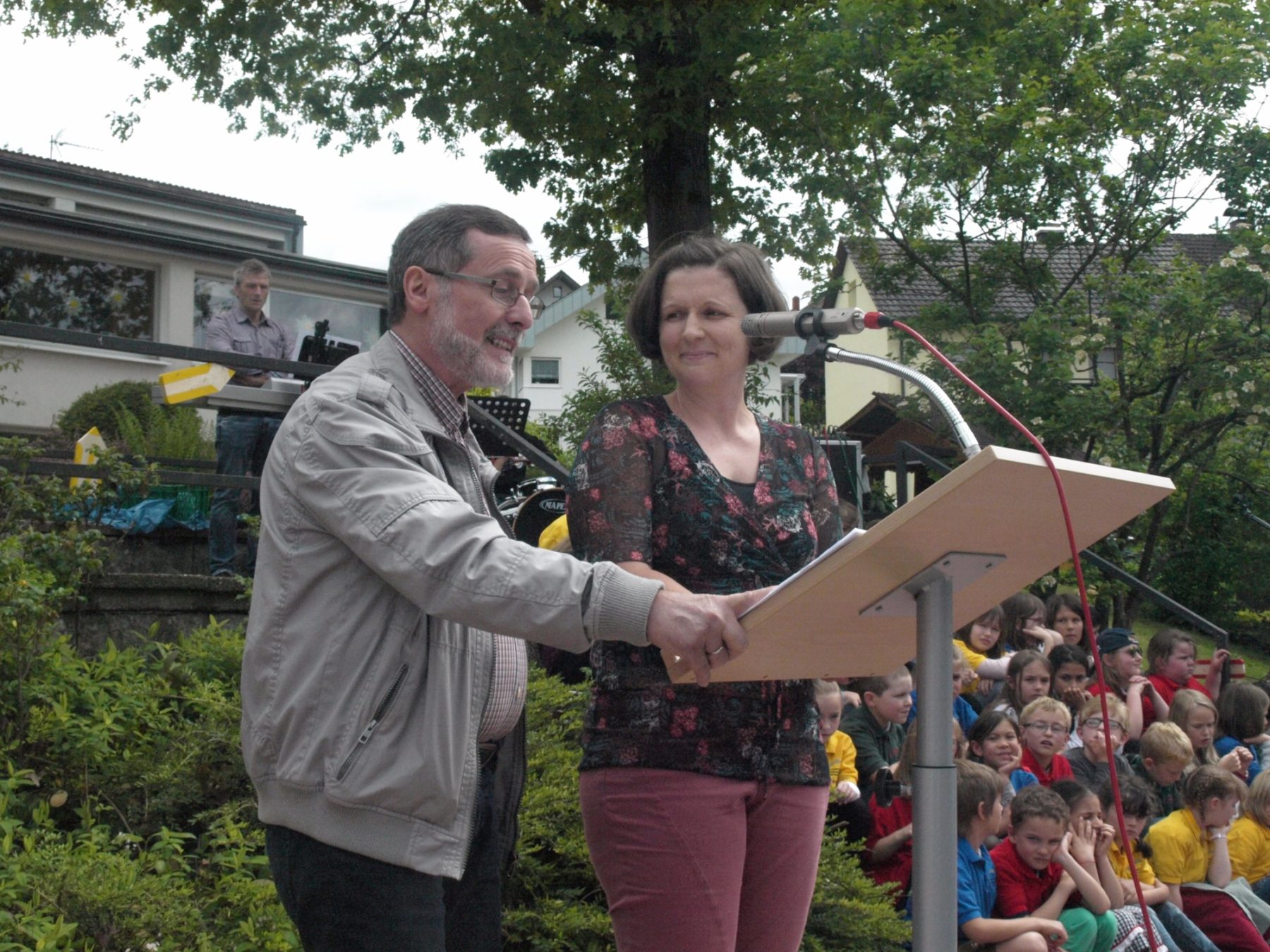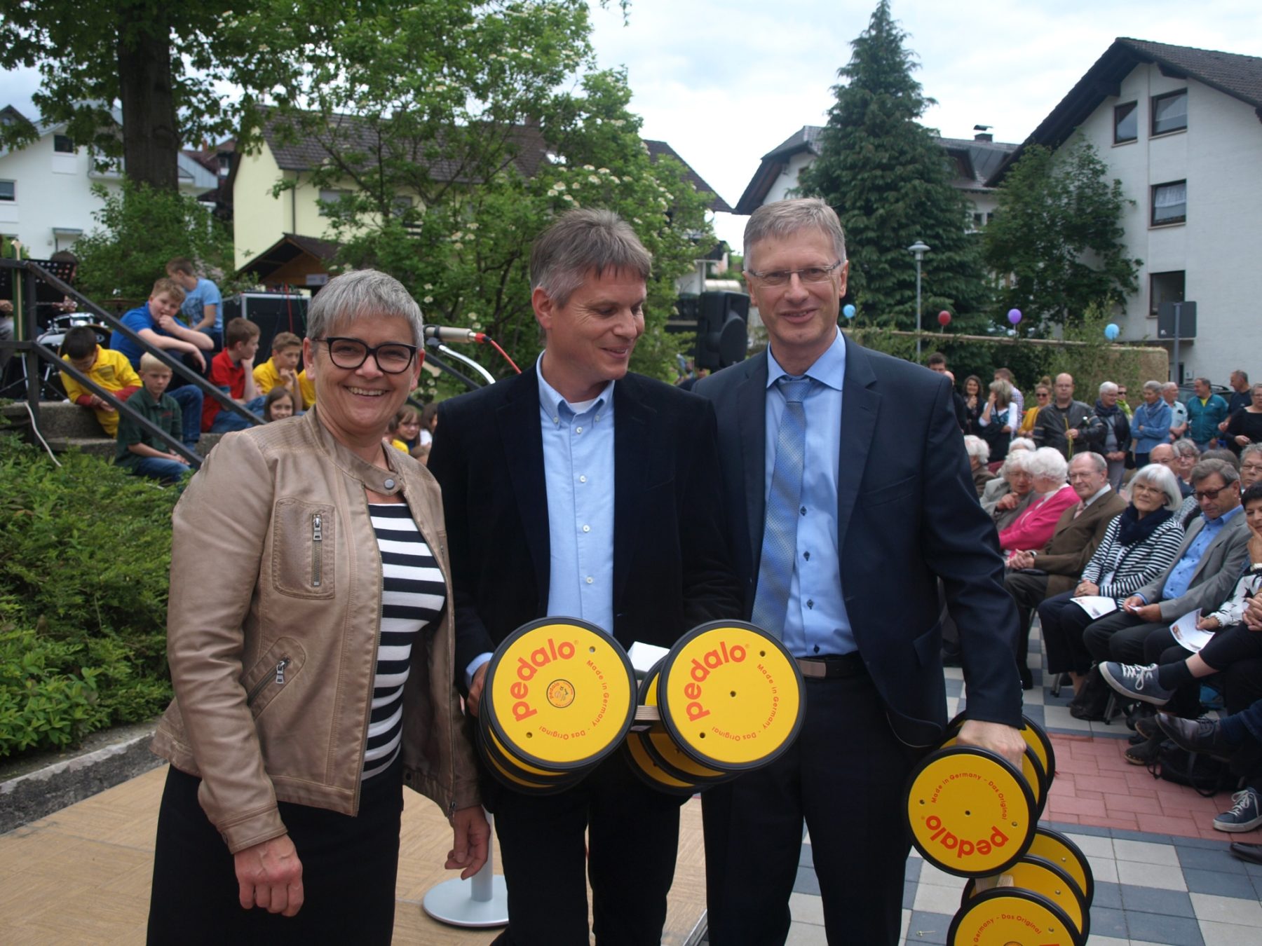 Großzügig zeigten sich auch mit einer Jubiläumsgabe die Sparkasse Haslach-Zell, die Volksbank Lahr sowie die einheimischen Betriebe Holzofenbäckerei Lehmann, Haarmoden Magdalene Spitzmüller und die Sanitär- Blechnereifirma Roland Bilharz. Zwei Pedalos für den neuen Schulhof überreichte Sonja Wurth als Wirtin des »Jägerstüble« und im Namen der Bürgerliste, denn »es sei wichtig, im Leben immer im Gleichgewicht zu sein.