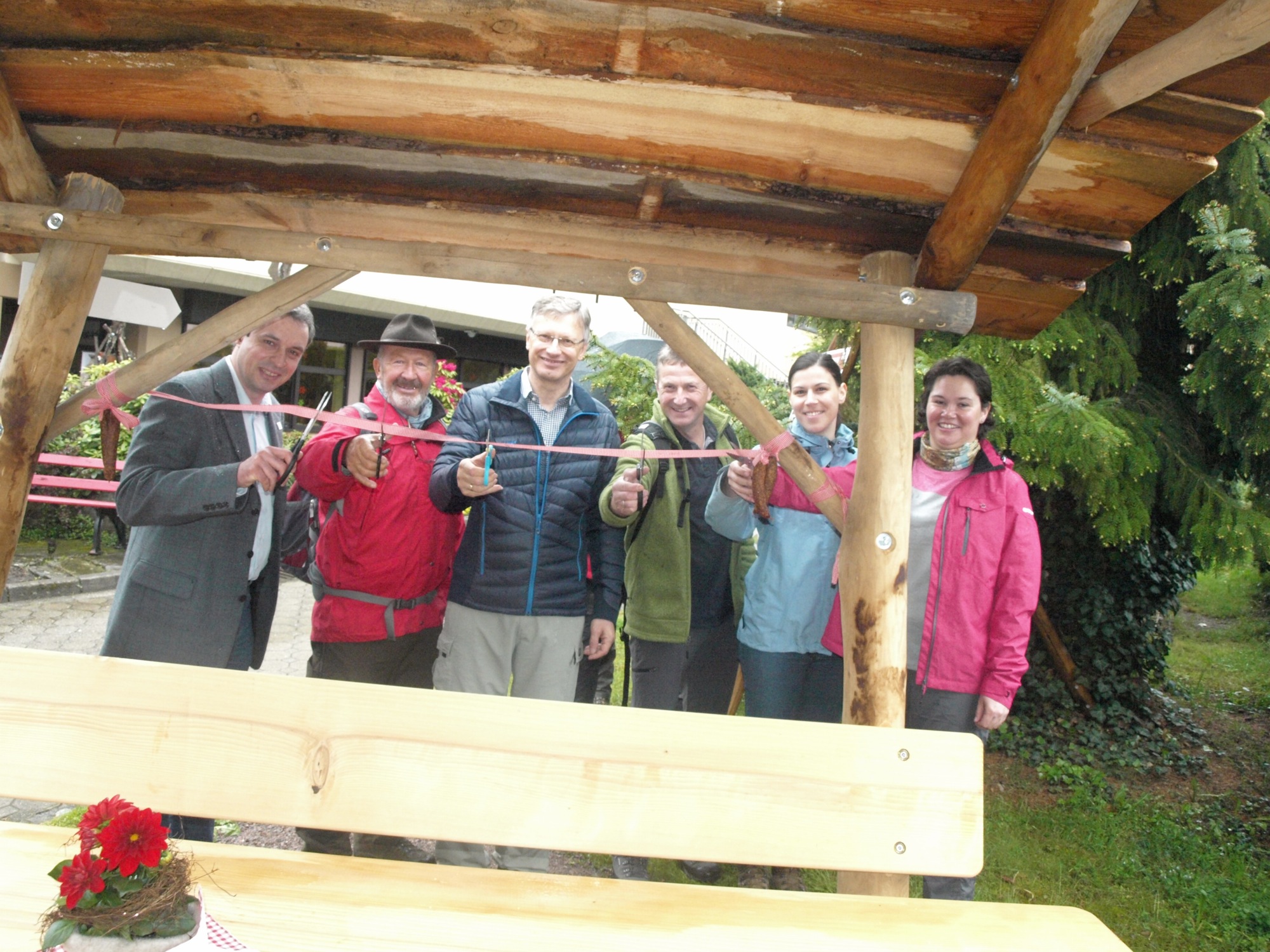 Als »interkommunales Projekt« bezeichnete Bürgermeister Huber die Realisierung, denn der Weg führt über Oberwolfacher Gemarkung zur Kreuzsattelhütte, weshalb auch Gabriele Schäfer als Vorsitzende des dortigen Schwarzwaldvereins und gleichzeitig Bezirksvorsitzende des Kinzigtals in Begleitung der 1. Bürgermeisterstellvertreterin Erna Armbruster zur Eröffnungsfeier gekommen war. Knapp 8.000 Euro betrugen die Sachaufwendungen für die Gemeinde, davon wurden 50 Prozent vom Naturpark Schwarzwald Mitte/Nord bezuschusst. Huber dankte dem stellvertretenden Geschäftsführer Christian Schütt, der für die Förderung zuständig ist.