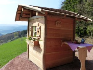 Aufgepasst: Kurz nach der Baumwiege führt ein Alternativweg zur Vesperstube Langenberg. Dieser trifft ein kleines Stück vor dem Bilderrahmen wieder auf die ursprüngliche Route. Kurz bevor wir beim Grabenjörgle in den Wald eintauchen, genießen wir eine Rast und den herrlichen Fernblick am »Schmusehisli«.