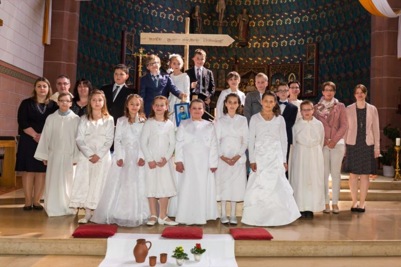 15 Kinder, acht Mädchen und sieben Jungen, feierten am Sonntag das Fest der Hl. Kommunion. Die Miliz- und Trachtenkapelle begleitete sie in traditioneller Weise vom Pfarrzentrum aus in die Pfarrkirche, wo sie zum ersten Mal den Leib des Herrn empfingen. Zahlreiche Angehörige und Gläubige der Gemeinde feierten in einem kindgerechten Gottesdienst, mitgestaltet von der Schola, mit den Erstkommunikanten diesen besonderen Tag.