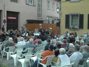 Im zweiten Teil des Programms wurde dem Publikum das musikalische Märchen »Die Bremer Stadtmusikanten« dargeboten. Die Rolle des Erzählers übernahm der Schauspieler Franz Kanstinger (Elzach), der mit seiner wandlungsfähigen Stimme dem unterschiedlichen Charakter der Märchenfiguren Ausdruck verlieh. Das Wechselspiel zwischen Sprecher und Orchester erforderte eine hohe Konzentration und zudem ein großes Einfühlungsvermögen der Instrumentalisten in die Handlung, um sie, ähnlich wie in einem Film, entsprechend musikalisch zu interpretieren und so die Wirkung im Zuhörer zu verstärken. Der große Beifall am Ende zeigte, dass dies eindrucksvoll gelungen ist.