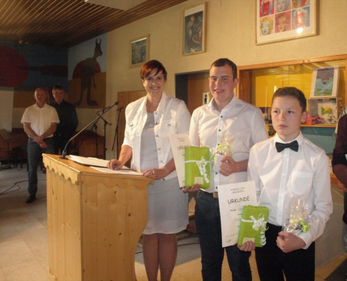 Für ihre hervorragende Leistung wurden Fabian Kranz (Notenschnitt 1,6) und Florian Lehmann (1,8) mit Preisen ausgezeichnet. Für ihr außergewöhnliches soziales Engagement erhielten Bastian Hertig und Marius Kornmayer den vom Förderverein gestifteten Preis, den ihnen Vorsitzender Berthold Bürkle überreichte.
