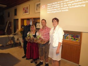 Das abwechslungsreiche Programm der Feierstunde eröffneten Annemarie und Magdalena Laifer auf ihren Harfen. Die 7.- und 8.-Klässler veranstalteten im entsprechenden Outfit eine Alm-Party und hauten im wahrsten Sinn des Wortes gekonnt auf die Pauke. Der Lehrerchor beteuerte in seinem Liedbeitrag überzeugend, dass Lehrer »keine Schweine« sind und die Abschlussklasse präsentierte neben einem Lied eine Bildershow von ihrer Fahrt nach Rimini sowie zwei lustige Ratespiele.