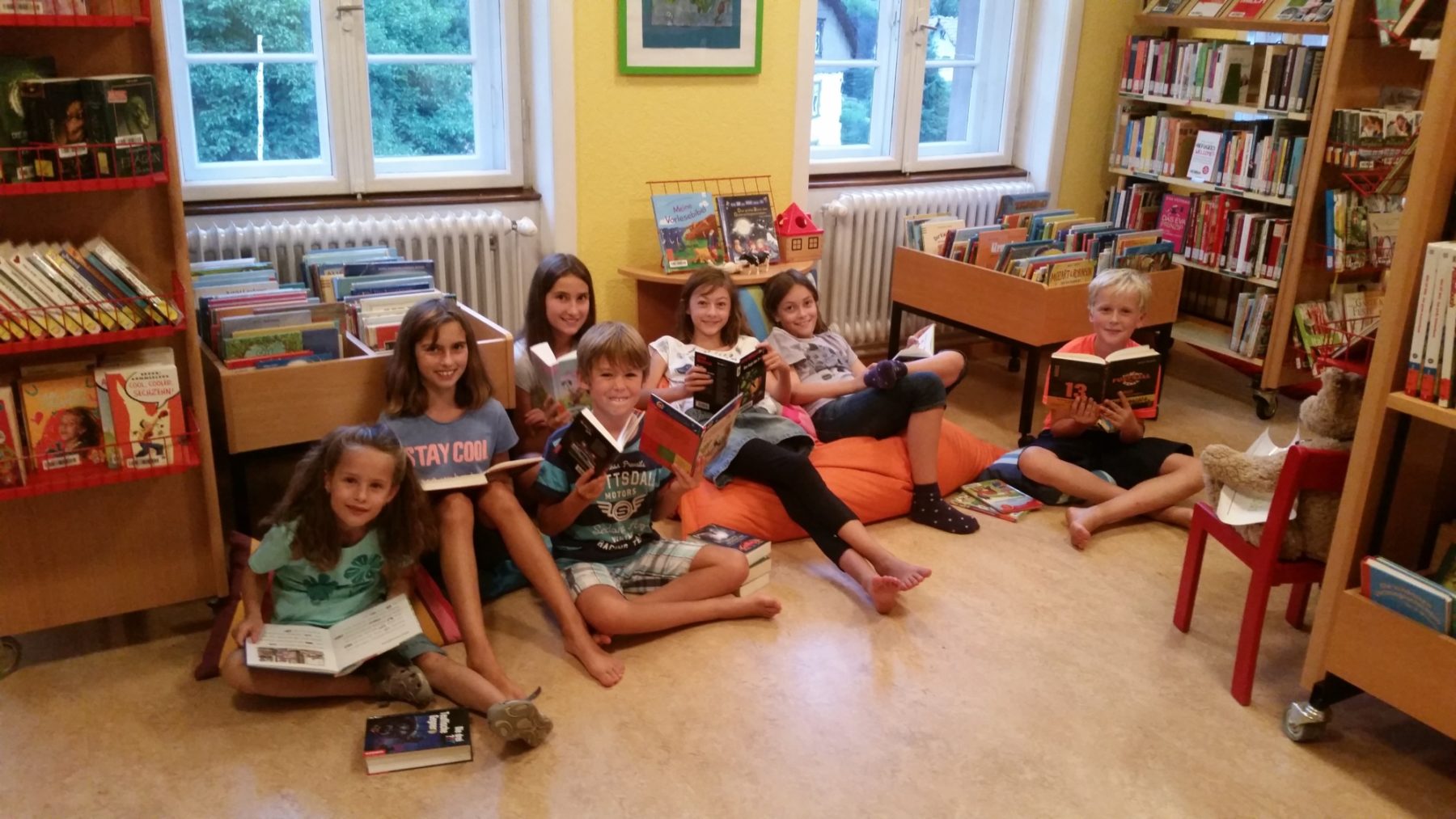 Zur Büchereibesichtigung mit anschließender Nachtwanderung luden die Mitarbeiter der Katholischen öffentlichen Bücherei St. Gallus, Anne-Kathrin Heizmann und Andreas Kasper, mutige Kinder ein. Bis zum Einbruch der Dunkelheit stellten sechs Leseratten ihre Lieblingsbücher untereinander vor. Hier war alles geboten – Science-Fiction, Tier- und Detektivgeschichten. Nach einer kleinen Stärkung durften die Kinder in der Bücherei schmökern und sich ein Buch aussuchen und erklären, warum es gerade dieses Buch sein sollte. Endlich war es draußen dunkel genug, dass man sich auf dem Weg zur Nachtwanderung in den Wald an der oberen Katzenhalde machen konnte. Hier wurde der tolle Ausblick ins Dorf genossen und nach gruseligen Geschichten über »Nochtkrapp & Co.« ging es wieder munter zurück. Glück gehabt, unterwegs traf man keine dunkle Gestalten, sondern nur einen munter vorbei hoppelnden Hasen.