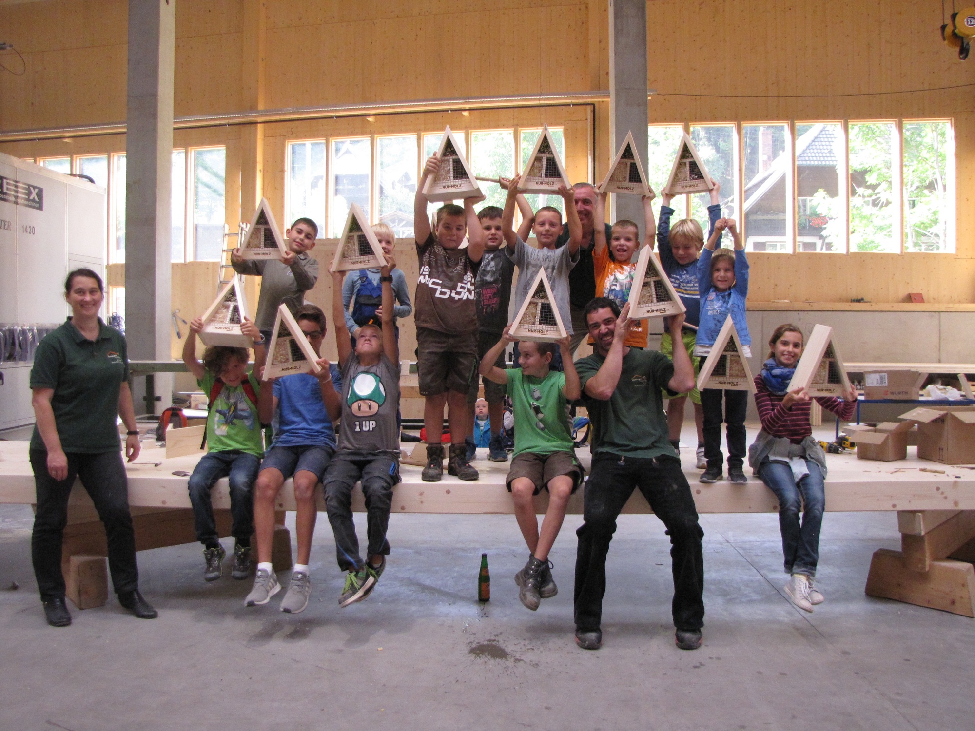 Einen interessanten Nachmittag erlebten zwölf Jungs und ein Mädchen, als sie gemeinsam mit Tanja Rombach und ihren Mitarbeitern die riesigen Hallen vom Unternehmen Rombach »NUR- HOLZ« besichtigten und die einzelnen Arbeitsbereiche kindgerecht erklärt bekamen. Nach der Theorie und nach einer Stärkung ging es zum praktischen Teil über und jedes Kind durfte ein Insektenhotel bauen. Die bereits vorgesägten Holzteile wurden glatt geschliffen und anschließend zusammengeschraubt. Zuletzt durften die großen und kleinen Fächer mit verschiedenen Naturmaterialien gefüllt werden. Die Kinder waren mit sehr viel Spaß und Begeisterung bei der »Arbeit« und freuten sich riesig über ihr selbst gebasteltes Insektenhotel, welches Zuhause sicherlich einen perfekten Platz bekommen hat, um im Frühjahr zahlreiche Insekten zu beherbergen. Die Familie Rombach ist bereits im vierten Jahr beim Kindersommer mit dabei und staunt immer wieder, welches Wissen die Kinder bereits im Alter von sechs bis 13 Jahren mitbringen, so dass es auch in diesem Jahr für alle eine tolle Aktion war.