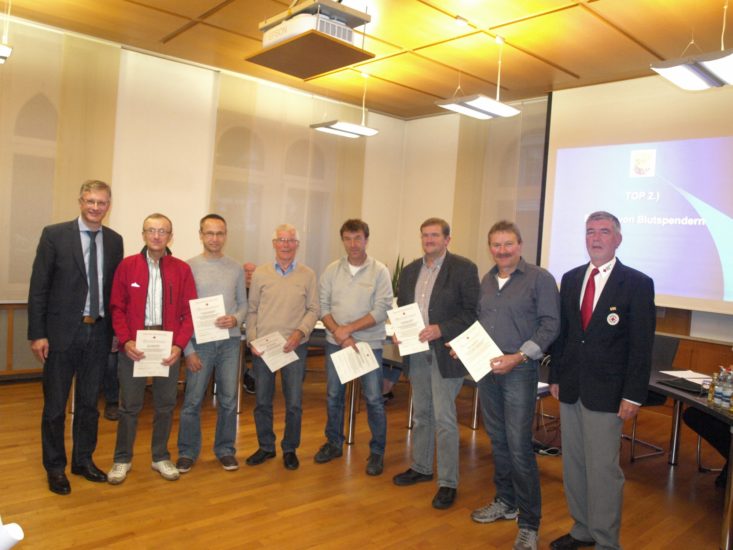 Einmal im Jahr werden Personen für mehrmaliges Blutspenden im Rahmen einer öffentlichen Gemeinderatssitzung geehrt, was auch die Wertschätzung für ihren wertvollen Dienst zum Wohl der Allgemeinheit unterstreicht. Sechs von insgesamt zwanzig Mehrfachspendern waren am Montag in den Sitzungssaal gekommen, um Dank und Auszeichnung entgegenzunehmen.