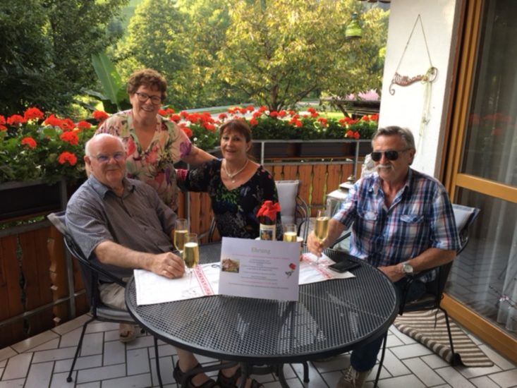 Susanne und Klaus Schmitt aus Trierweiler verbringen seit 12 Jahren ihren Urlaub in Oberharmersbach im Haus »Rose«. Für diese Treue wurden sie von den Gastgebern Rosi und Alfred Lehmann geehrt.
